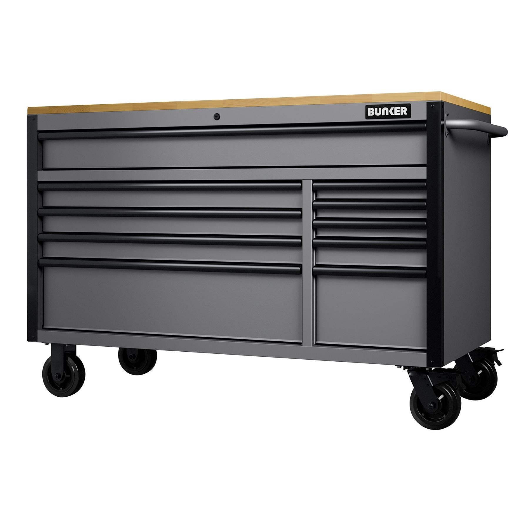 BUNKER® 10 Drawer Workbench Roller Tool Cabinet, 56", Light Grey