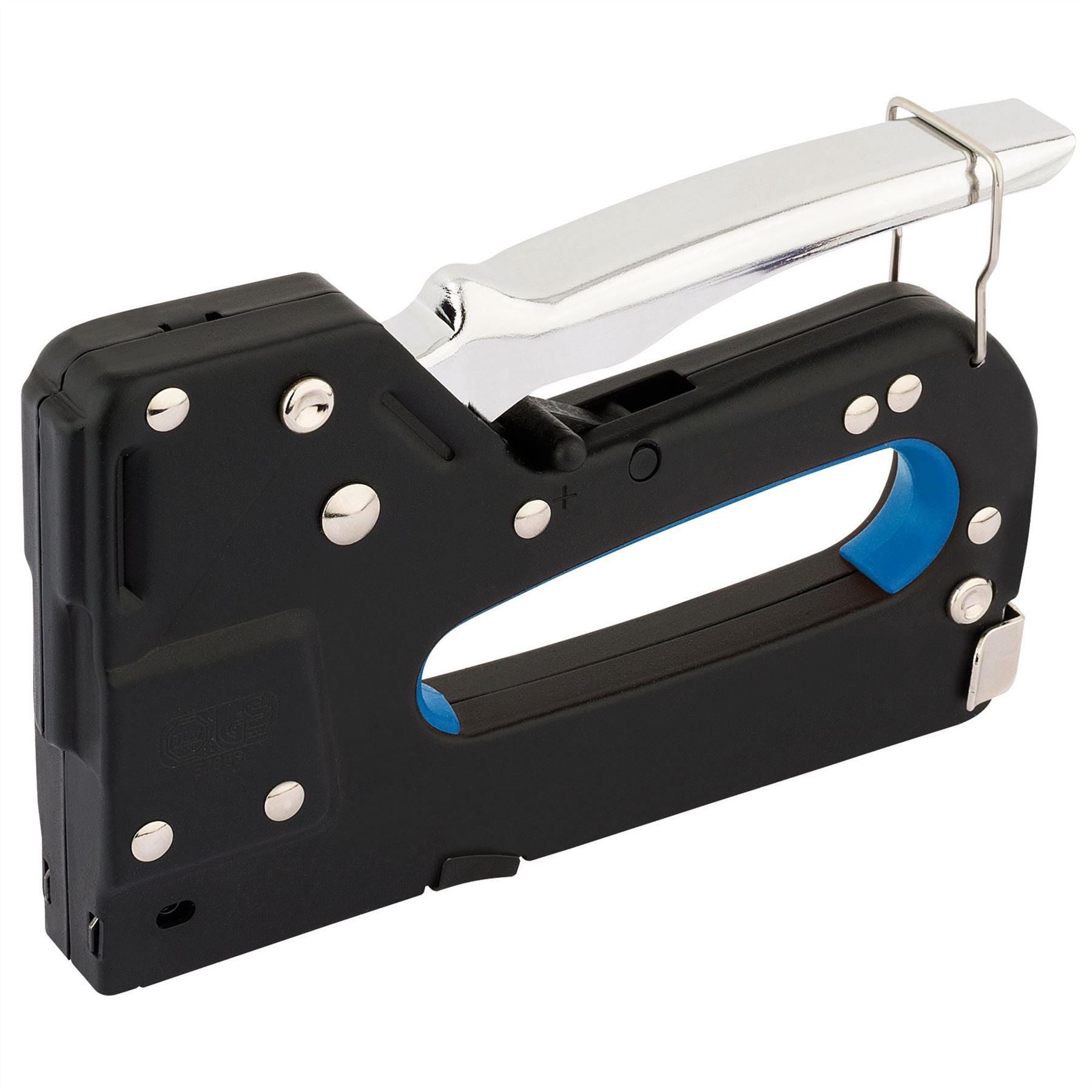 Light yet robust, dual purpose tacker/nailer. Pressed steel body with an ergonomic handle, safety lock system and adjustable power control. Uses 6-14mm staples or 14mm 'I' nails (supplied separately).