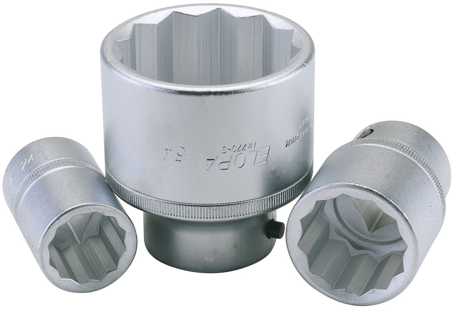Professional Quality, sockets manufactured from chrome vanadium steel hardened, tempered and chrome plated for corrosion protection. Chamfered end allows positive nut location and entry. Hole for driving accessory with locking pin. Some socket sizes have knurled band for extra hand grip. Sold loose.