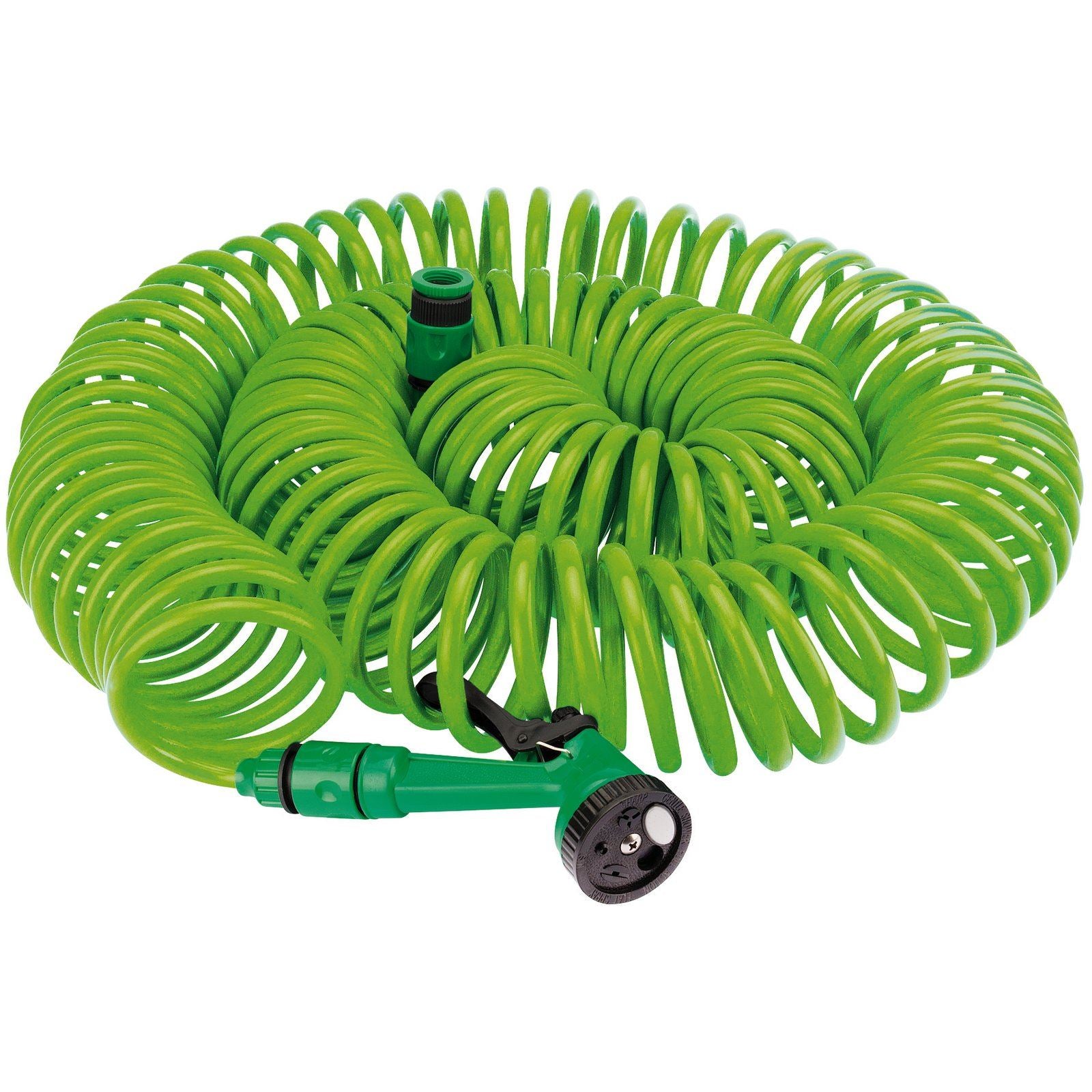 Hose kits comprising 10m or 30m (working lengths) 3/8" diameter recoil hose, 1/2" tap connector and five pattern spray gun. Display packed.