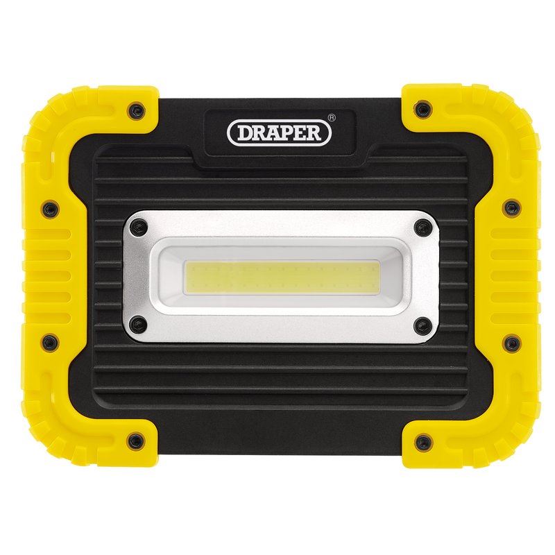 10 watt COB work light manufactured from shock - resistant plastic and fitted with TPR corners and support stand. Produces a 700 - lumen output. Supplied with a pivot stand and operated by 4 x AA batteries (Supplied separately).