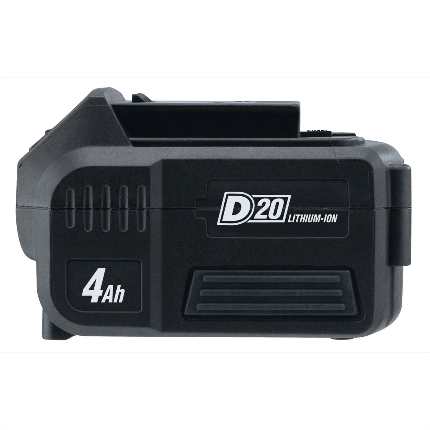 Features: Part of the D20 series, Brushless motor, Supplied with 2 x 4.0Ah batteries, Supplied with 2.4A charger which fully charges a 4.0Ah battery in 110 mins, 5 torque pre-sets 100N, 150N, 200N, 300N, 400N, Super bright LED work light, Belt clip, Protective bump cover
