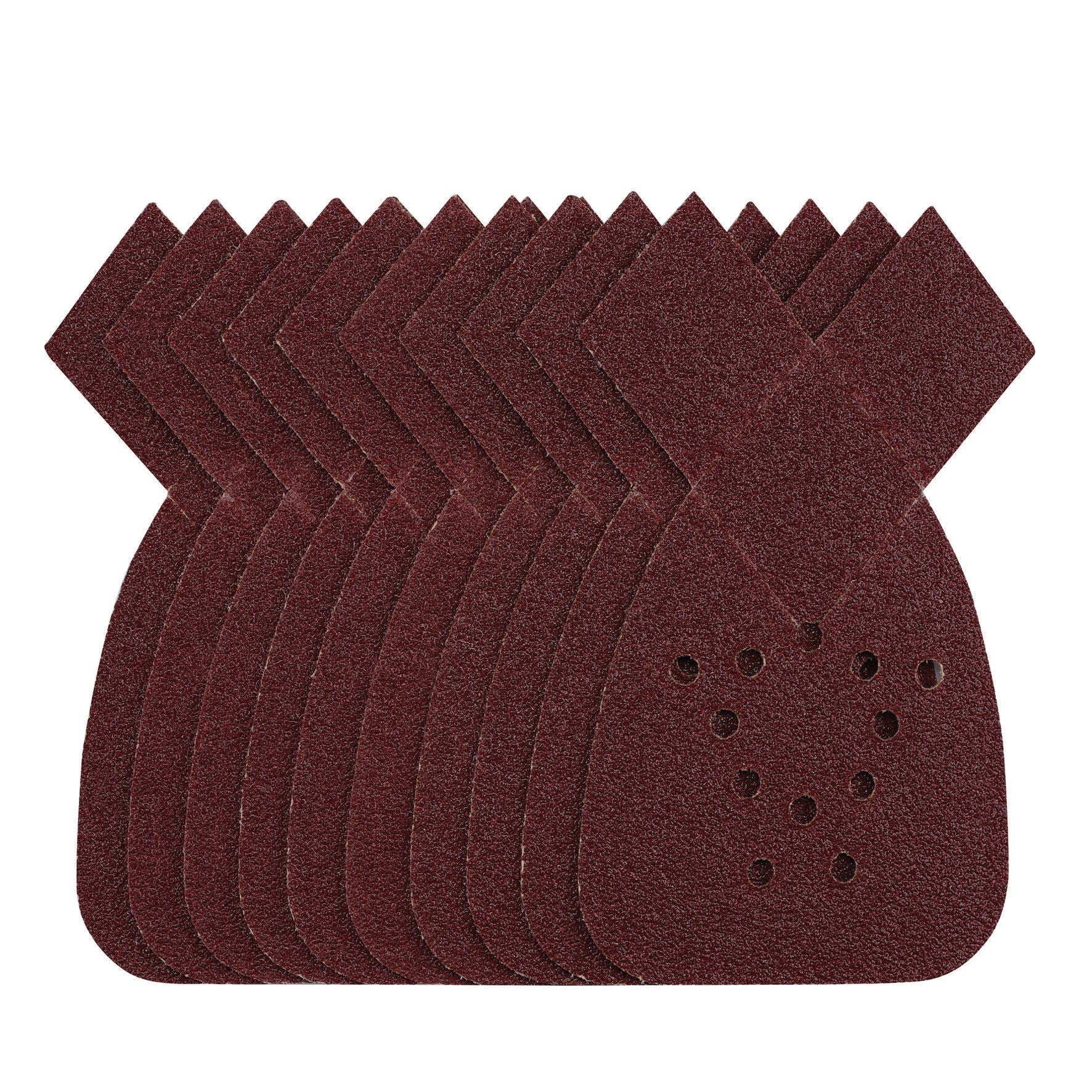 This pack of 140mm detail sanding sheets have extra perforated tear-off diamonds for increased detail sanding. Made from premium quality aluminium oxide that is resin bonded to provide improved grain adhesion, anti-static qualities and long-lasting performance. The heavy-duty E-Weight backing paper makes the sanding sheet more durable - able to withstand the toughest jobs. The hook and loop backing offers decent adhesion to facilitate the fast changing of sanding sheets. The 12 pre-punched 6mm holes improve dust extraction. Ideal for sanding and finishing wood, metal, aluminium alloy, painted surfaces, plastic and fillers. Compatible with most detail sanders with 140mm hook and loop backing pads.