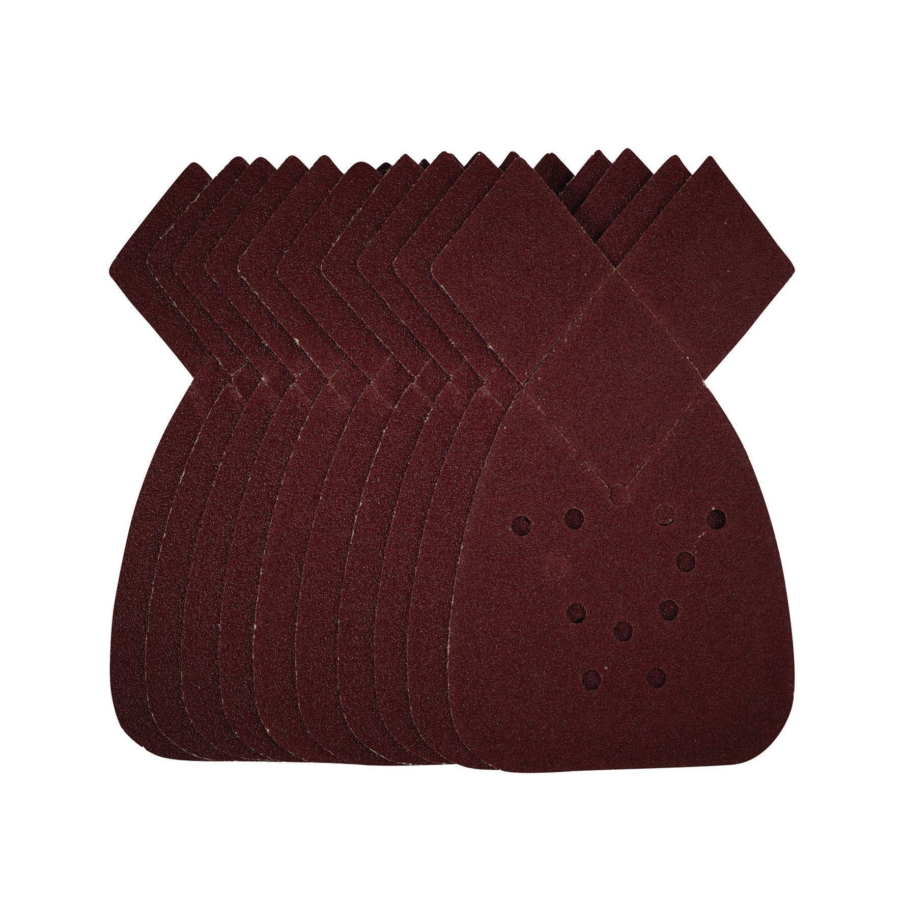 This pack of 140mm detail sanding sheets have extra perforated tear-off diamonds for increased detail sanding. Made from premium quality aluminium oxide that is resin bonded to provide improved grain adhesion, anti-static qualities and long-lasting performance. The heavy-duty E-Weight backing paper makes the sanding sheet more durable - able to withstand the toughest jobs. The hook and loop backing offers decent adhesion to facilitate the fast changing of sanding sheets. The 12 pre-punched 6mm holes improve dust extraction. Ideal for sanding and finishing wood, metal, aluminium alloy, painted surfaces, plastic and fillers. Compatible with most detail sanders with 140mm hook and loop backing pads.