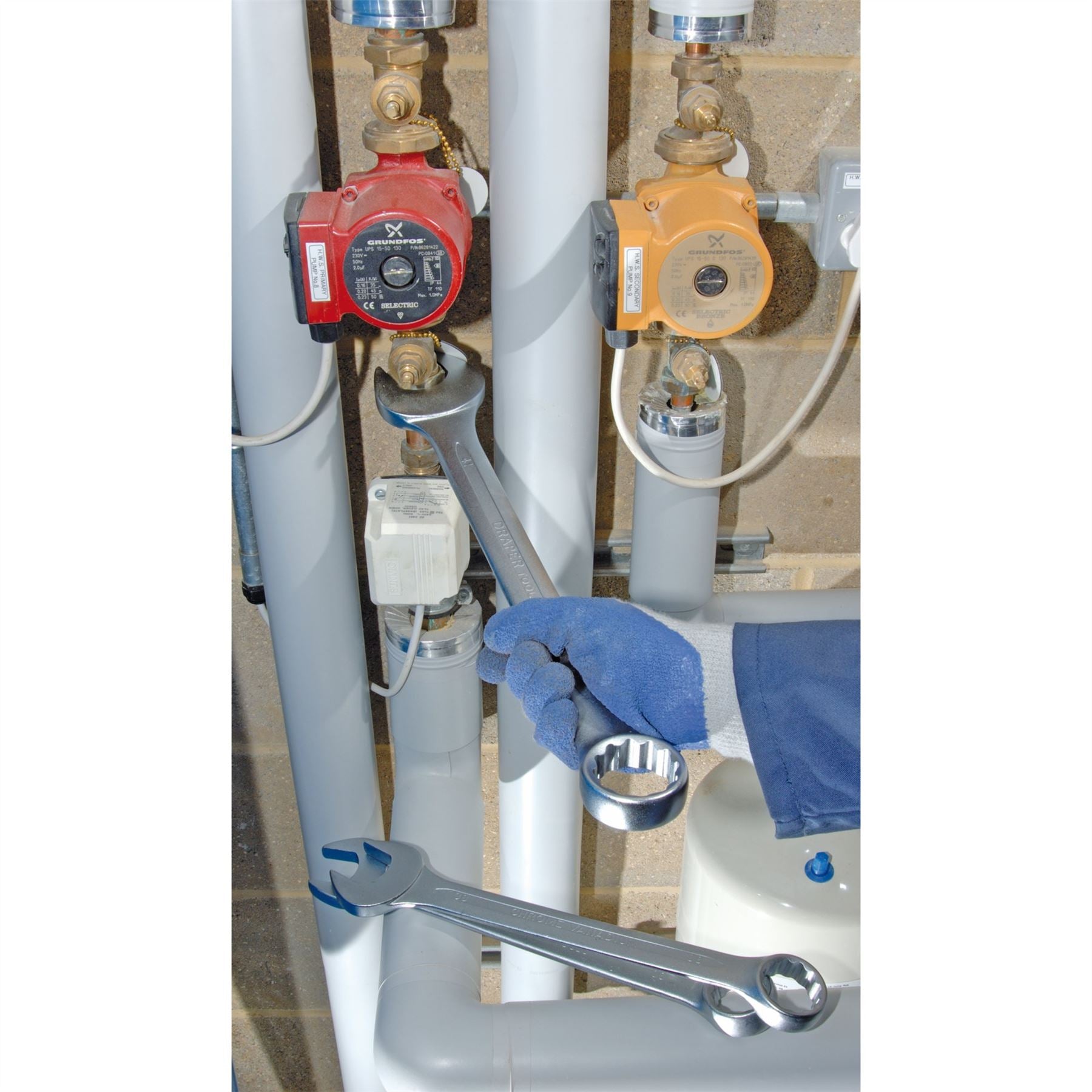 Forged from chrome vanadium steel hardened, tempered and chrome plated for corrosion protection. PolishedDraper HI-TORQ ring end offset at 15 . Jaw offset at 15 . Supplied in wall mountable plastic storage rack. Display packed.