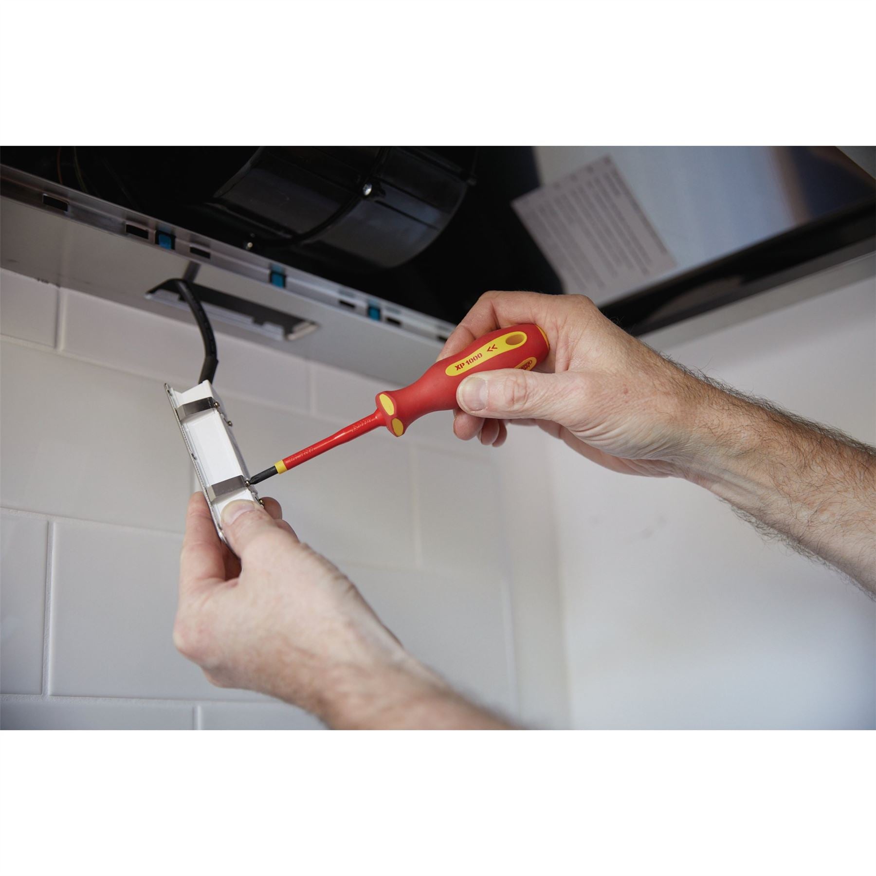 Expert Quality, tested to 10kV, suitable for working on live circuits of 1kV AC and 1.5kV DC. Blades manufactured from SVCM+ alloy steel hardened, tempered and chemically blacked. Fully insulated ergonomic soft grip handle with deep set blade sheath for total safety. Display packed on individual storage hanger.