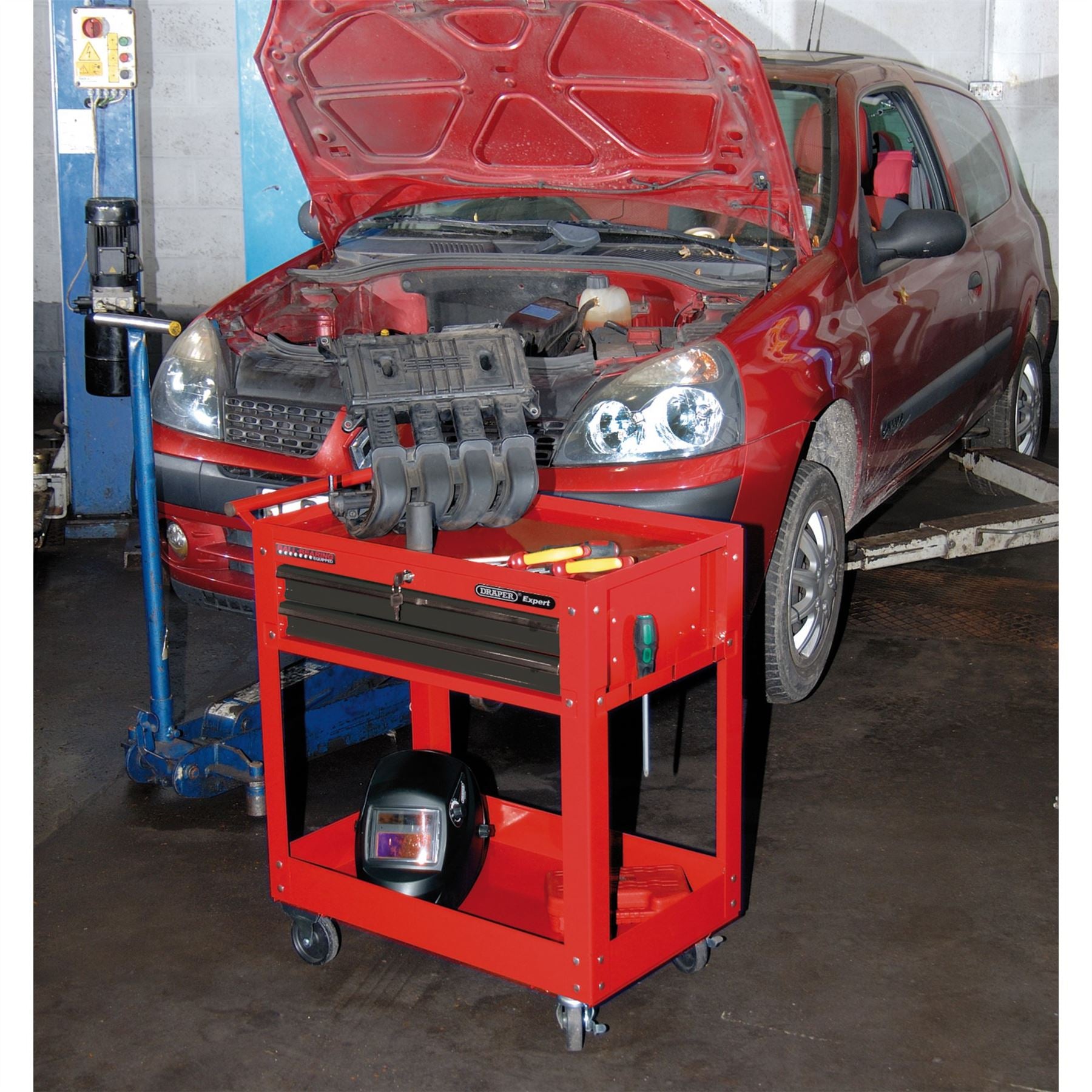 Draper Expert 07636 2 Drawer Tool Trolley with gas strutted lid top compartment. - 07635