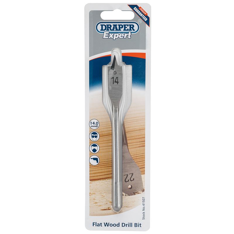 Expert Quality, flat wood drill bits manufactured from hardened and tempered carbon steel. Display packed.