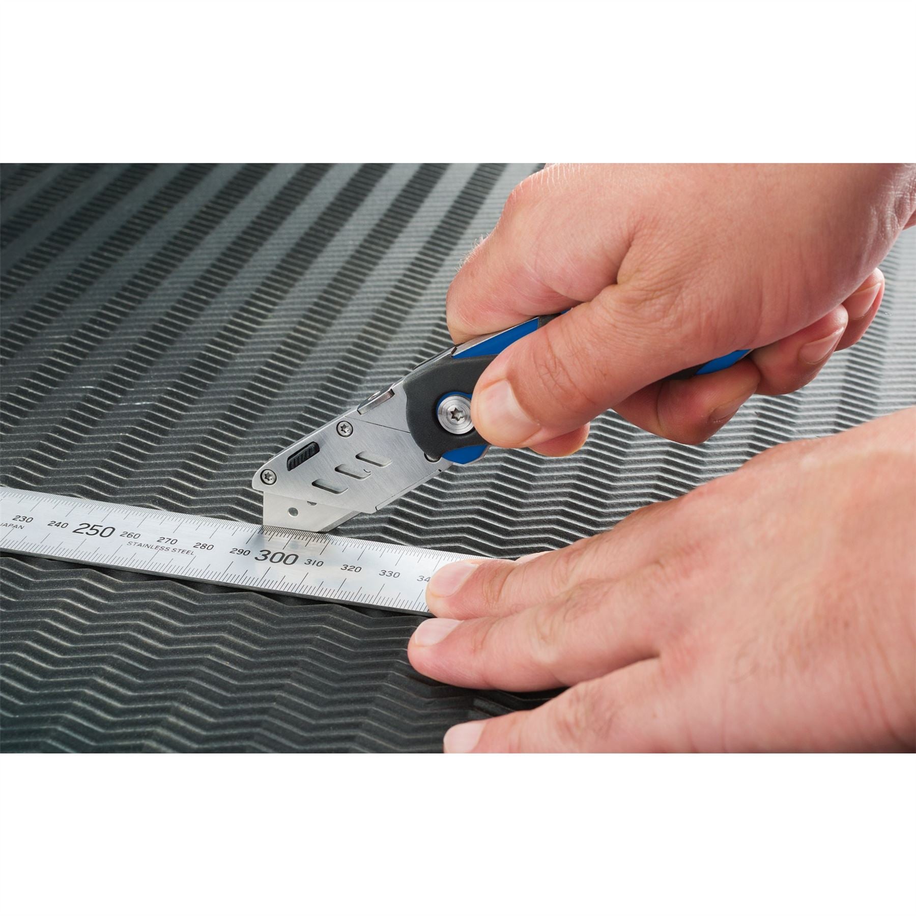 Safety locking mechanism and belt clip. Blade folds back into knife body for safety. Featuring a push button locking system that prevents the knife from being opened or closed accidentally. Display packed.