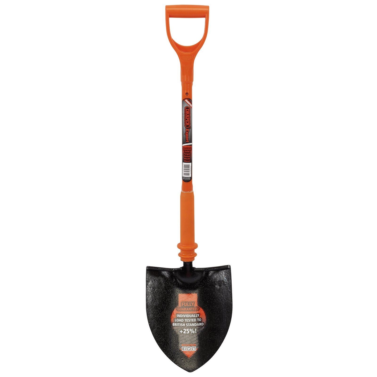 Expert Quality, fully insulated round mouth shovel designed for working near live cable and wires. Individually tested to 10,000 volts, guaranteeing safe working on 1,000V and complying to the BS 8020 standards. Manufactured with an epoxy fibreglass core and attached to a fully enclosed insulated shaft with hand slip guard. Each shovel is supplied with a certificate of conformity, which correlates with a unique traceability number embossed on the shaft. Sold loose.