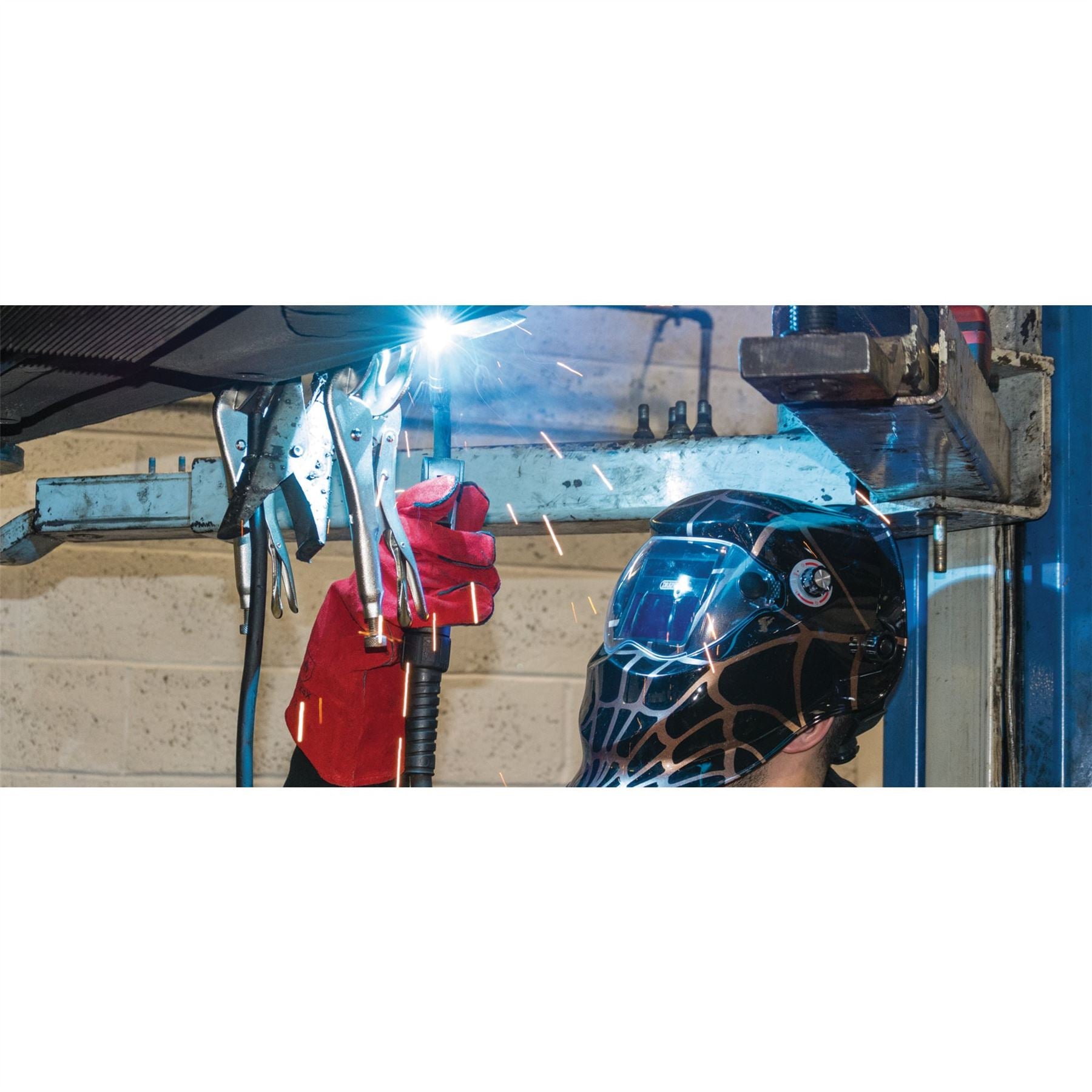 Fully lined leather welding gloves with a total length of 355mm. Display packed.