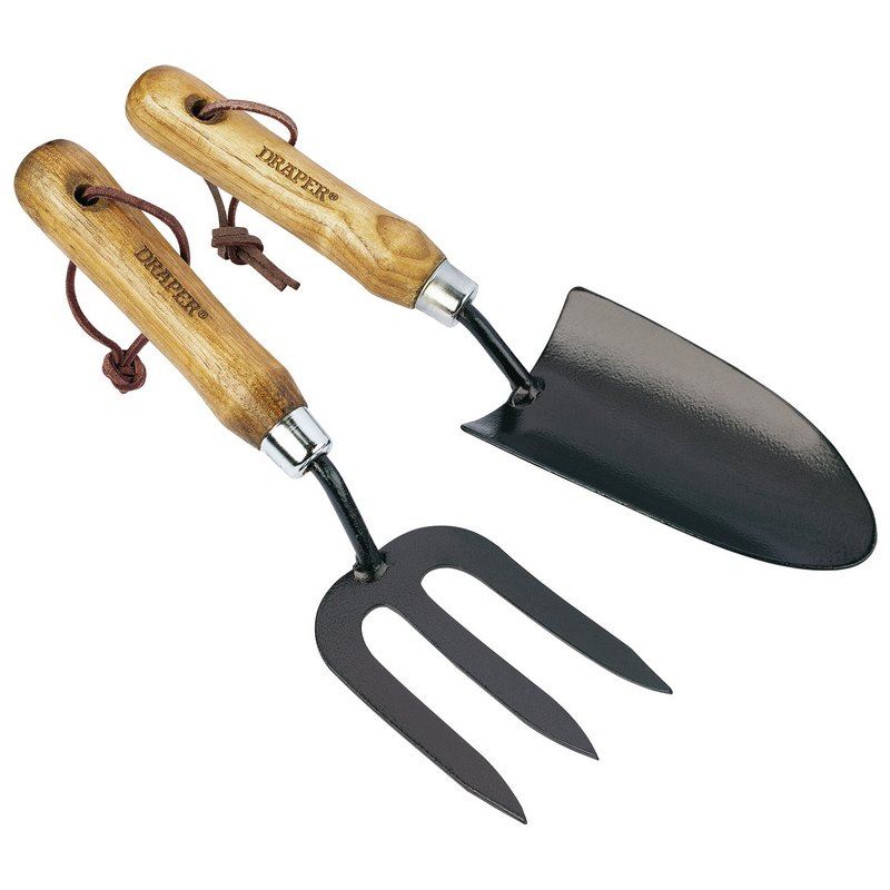 Draper Garden Ash Handle Carbon Steel Heavy Duty Hand Fork and Trowel Set 83776