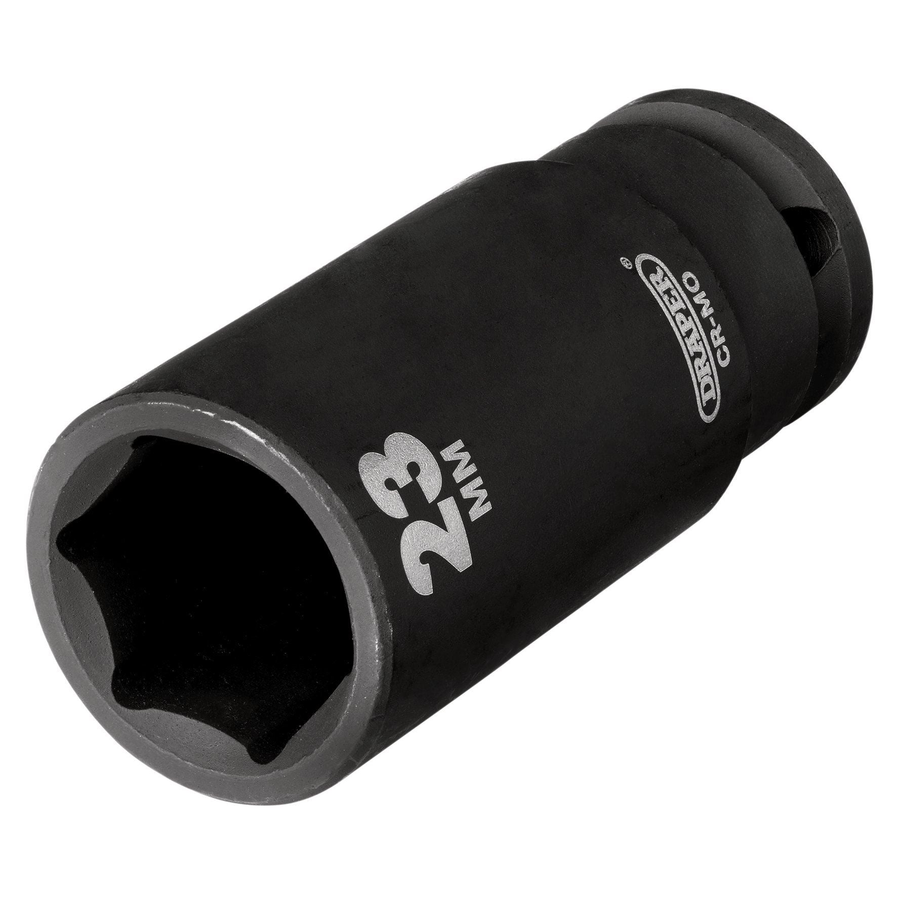 These Draper Hi-TORQ& 6-point deep impact sockets are forged from hardened chrome molybdenum steel. Black phosphate finish for corrosion protection. For use with electric or pneumatic impact wrenches with a 1/2" drive.