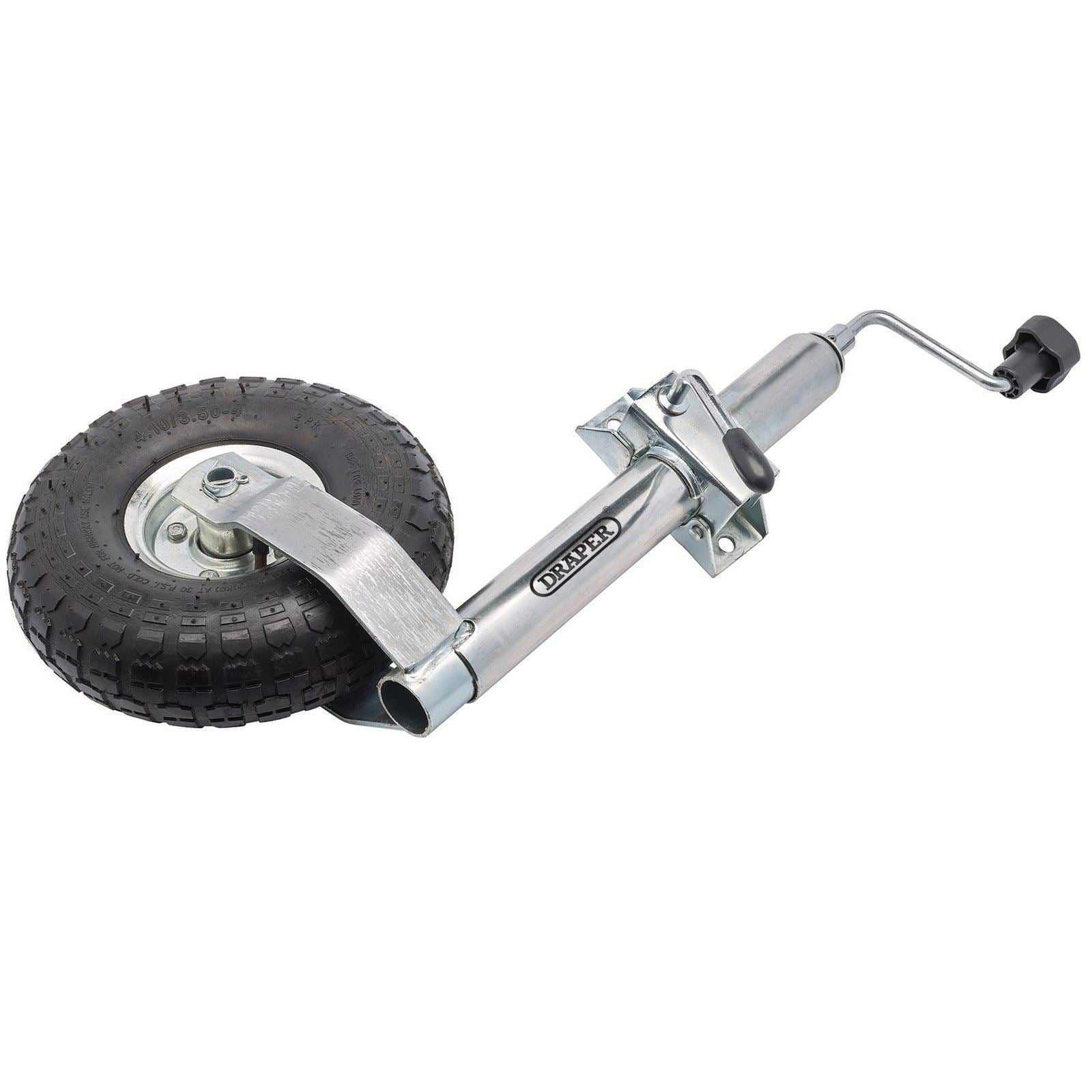 Steel jockey wheel with 260mm heavy-duty pneumatic wheel complete with 48mm clamp. Provides extra support and stability when hitched or unhitched. Used to help move a trailer into position or to assist moving a trailer around when not hooked to a tow vehicle. Height adjustment handle for ease of use. Zinc-plated finish helps resist corrosion. Static load bearing capacity 136kg.