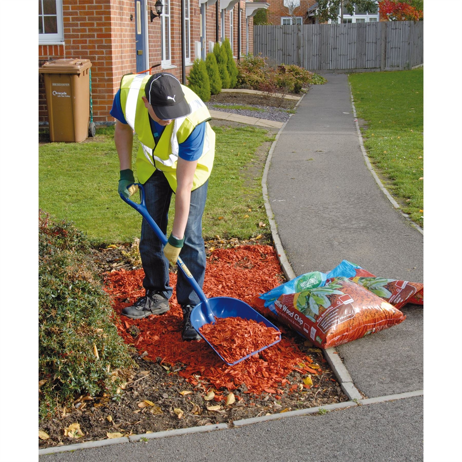 Heavy duty one piece polypropylene shovel with extra wide blade and forward tilt y-dee shaped handle for user comfort. Ideal for use with wood chips, snow, grain, stable/farm waste and compost. Blade width: 345mm and 380mm long. Sold loose.