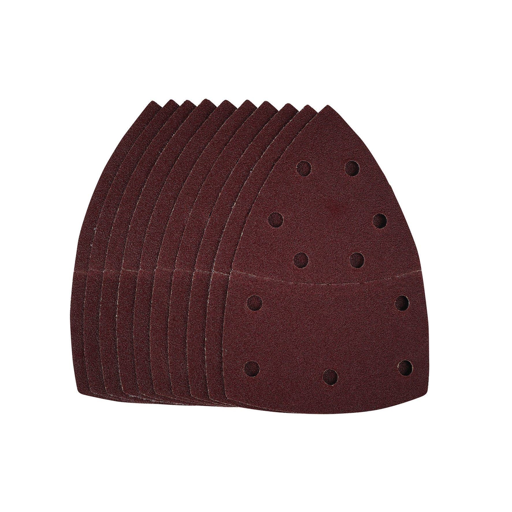 These multi-sanding sheets have a perforated tear off delta sheet for detail sanding (102 x 62mm, 93mm). They are made from aluminium oxide that is resin bonded to provide improved grain adhesion, anti-static qualities and long-lasting performance. The heavy-duty E-Weight backing paper makes the sanding sheet more durable - able to withstand the toughest jobs. The hook and loop backing offers decent adhesion to facilitate the fast changing of sanding sheets. The 11 pre-punched 8mm holes help eliminate clogging and improve the dust extraction. Ideal for sanding and finishing wood, metal, aluminium alloy, painted surfaces, plastic and fillers. Compatible with most mouse detail sanders with hook and loop backing pads including Draper Stock No. 57681.