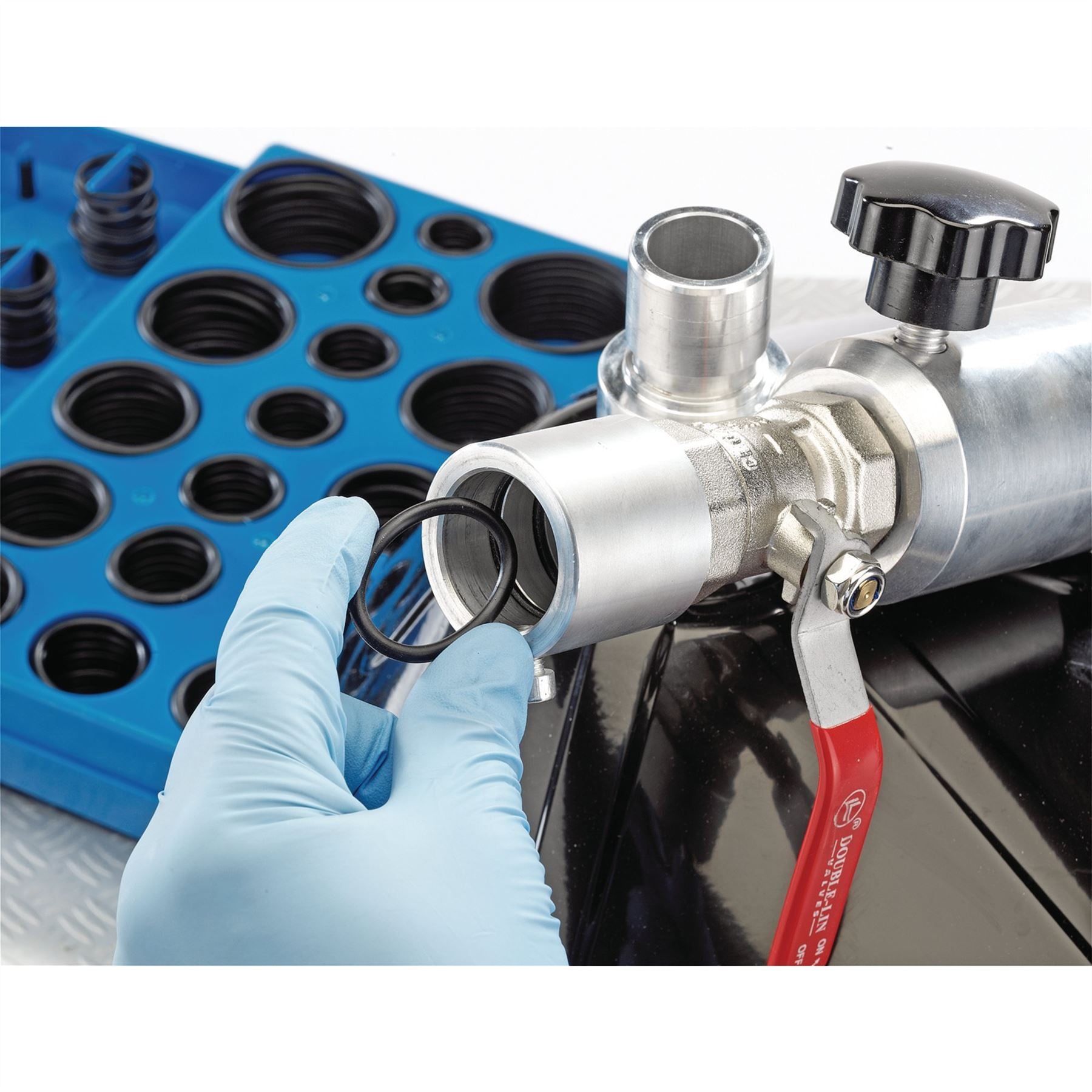 An assortment O-rings, size range 3mm I.D. x 1.5mm section to 50mm I.D. x 3.5mm section. Packed in blow mould storage case with display sleeve.