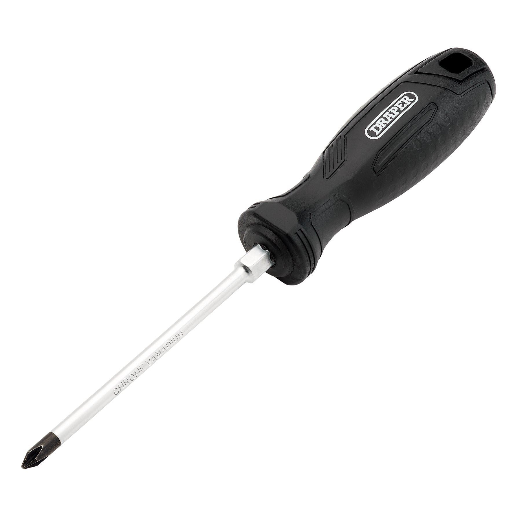 These phillips screwdrivers have a hardened chrome vanadium steel round blade with chrome plating for corrosion protection. The larger sizes have a hex bolster so they can be turned with a spanner for extra torque. The blade tip is magnetic to hold the screw in place, making it easier to deliver more accurate force and precise fastening and loosening. The tip also has a black phosphate coating for added durability. Comfortable moulded grip handle made from high impact resistant plastic, which is easy to clean and resistant to oils and chemicals. Its shape helps ensure the screwdriver does not roll off flat surfaces. There is a hang hole integrated into the handle for convenient storage.
