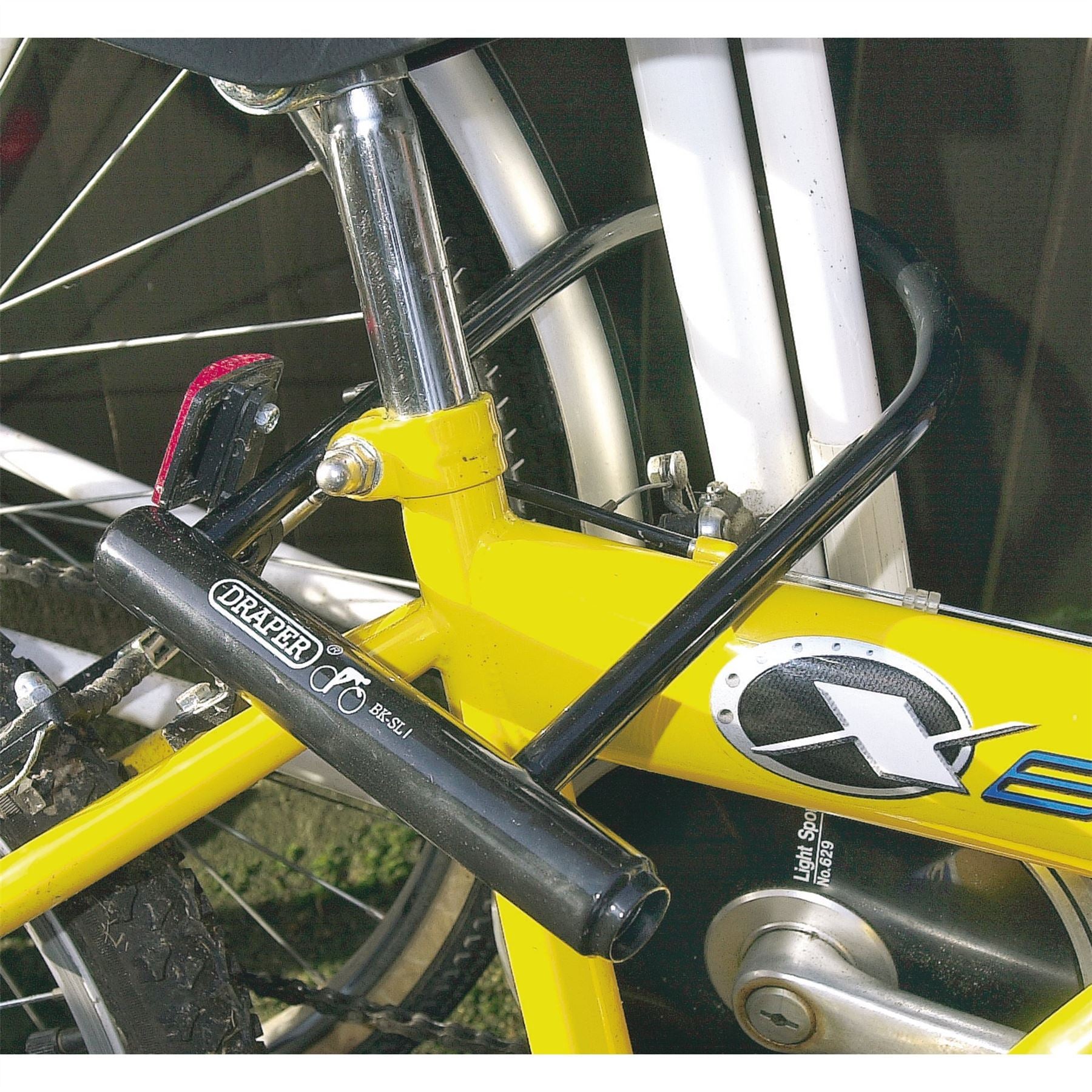 This shackle lock secures bicycles and is PVC coated for corrosion protection. Supplied with mounting bracket for carrying on bicycle and two keys.