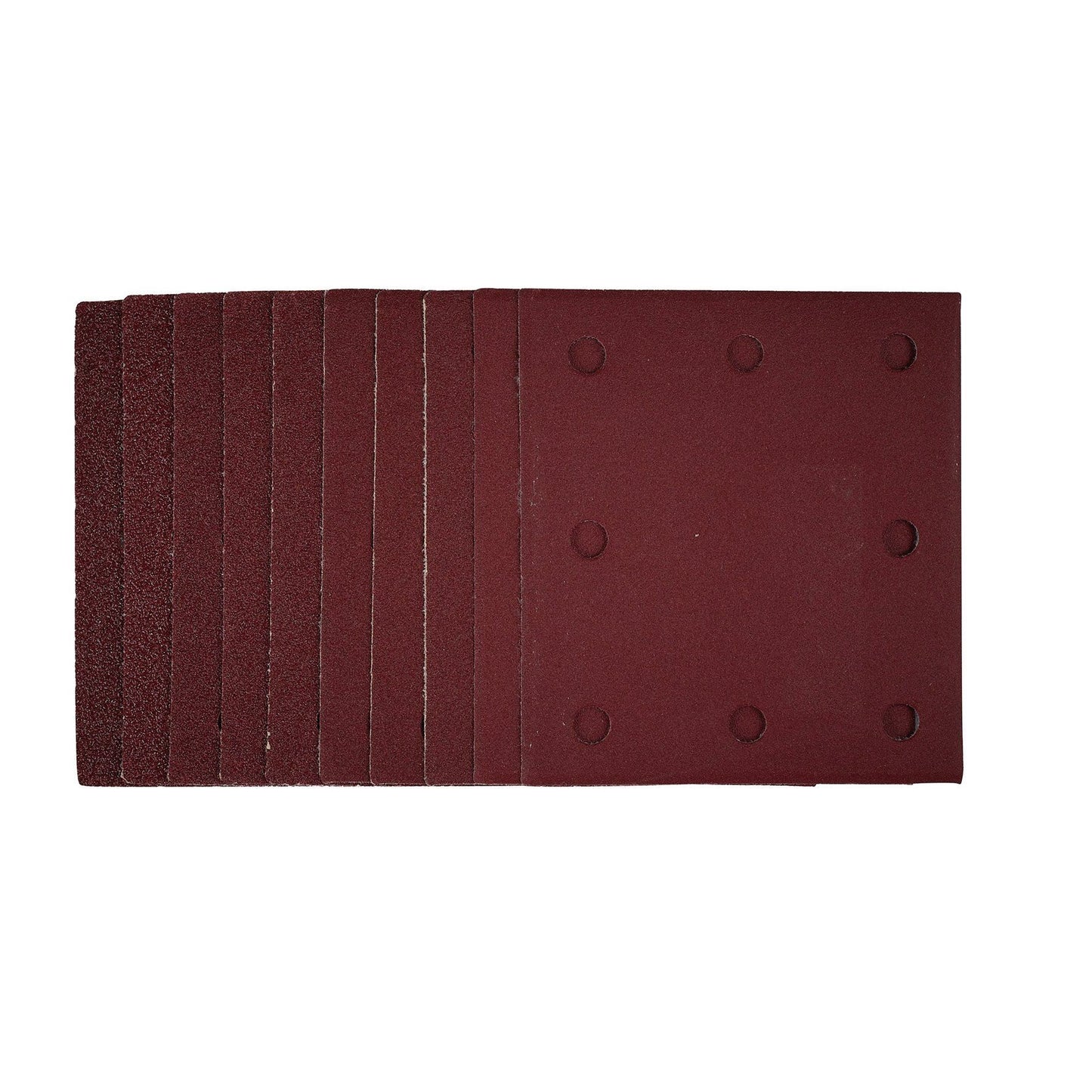 This pack of 1/4 sanding sheets (115 x 105mm) are made from premium quality aluminium oxide that is resin bonded to provide improved grain adhesion, anti-static qualities and long-lasting performance. The heavy-duty E-Weight backing paper makes the sanding sheet more durable - able to withstand the toughest jobs. The hook and loop backing offers decent adhesion to facilitate the fast changing of sanding sheets. The eight pre-punched 8mm holes improve dust extraction. Ideal for sanding and finishing wood, metal, aluminium alloy, painted surfaces, plastic and fillers. Compatible with most 1/4 sanders with hook and loop including Stock No. 57691.