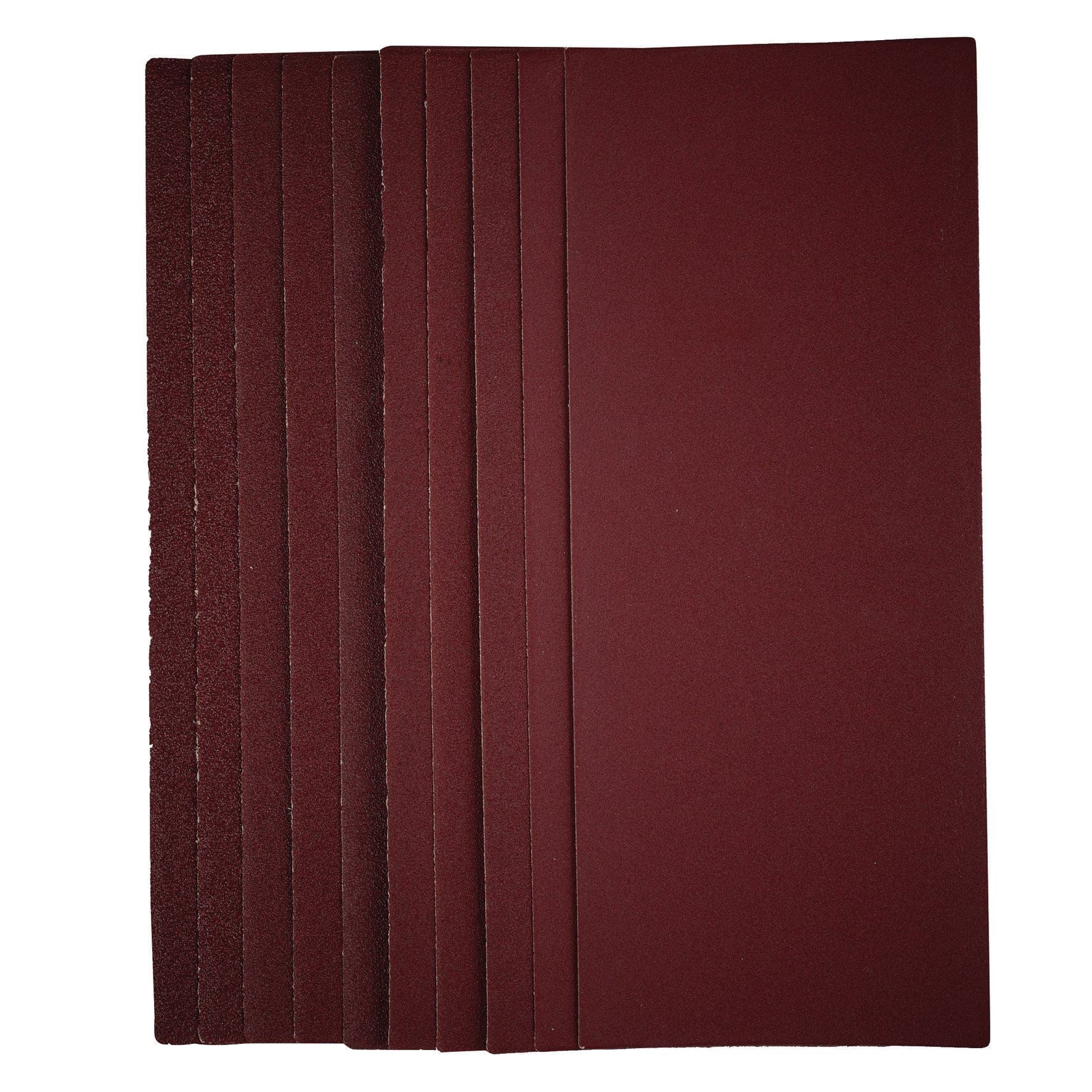 This pack of 1/2 sanding sheets (115 x 280mm) are made from premium quality aluminium oxide that is resin bonded to provide improved grain adhesion, anti-static qualities and long-lasting performance. The sheets are pre-cut to fit 1/2 sanders with clamping function (115 x 230mm). The heavy-duty E-Weight backing paper makes the sanding sheet more durable - able to withstand the toughest jobs. Ideal for sanding and finishing wood, metal, aluminium alloy, painted surfaces, plastic and fillers. Compatible with most 1/2 sanders including Stock No. 57941.