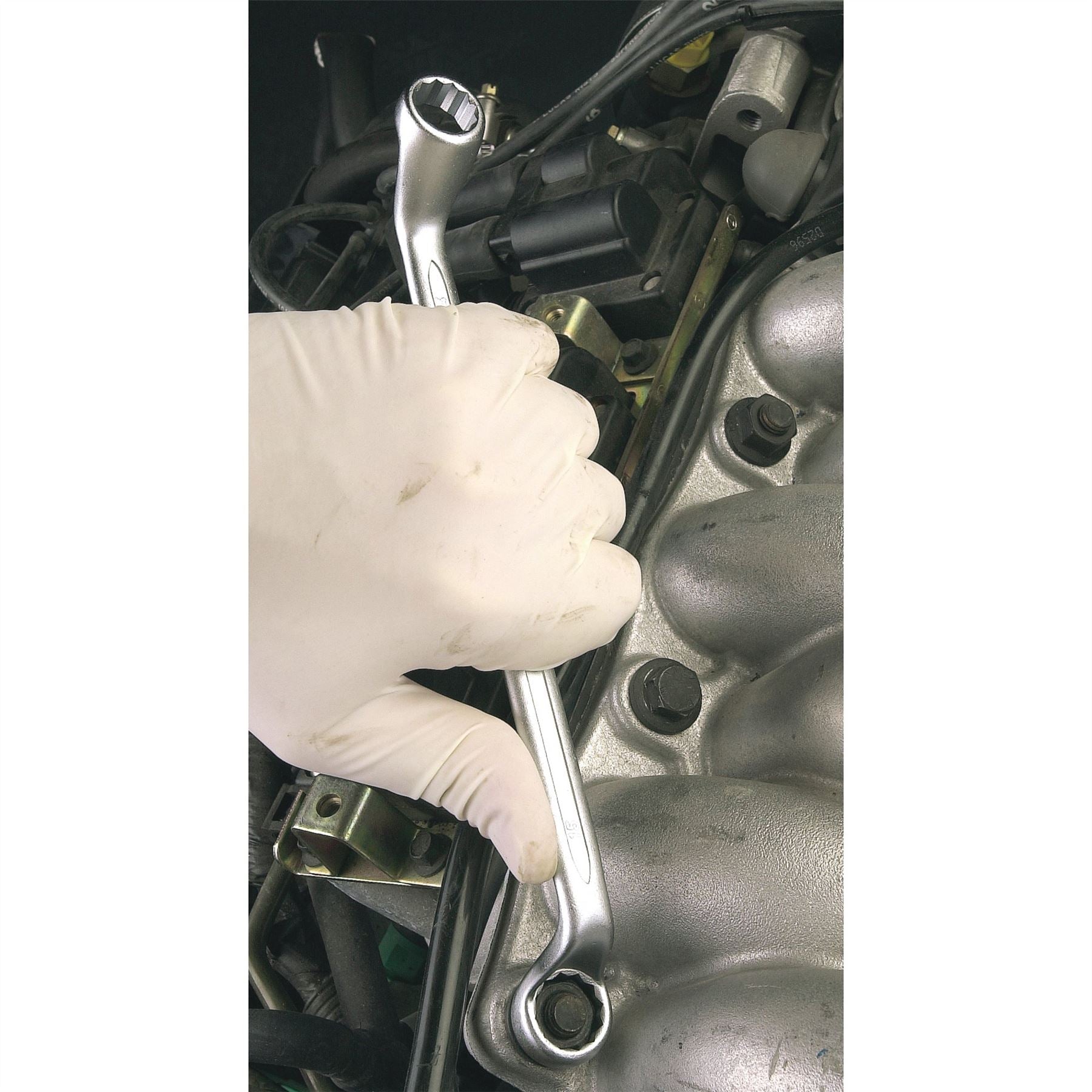 Professional Quality, long series manufactured from chrome vanadium steel hardened, tempered and chrome plated for corrosion protection. Ring ends are accurately broached with chamfered bi - hexagon profiles for easy nut location and are offset at 45 . With clip. Carton packed.