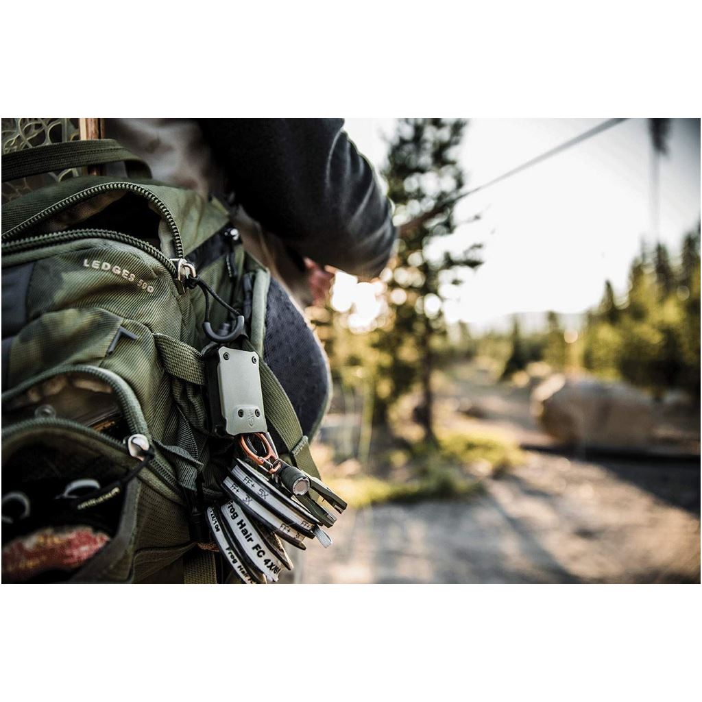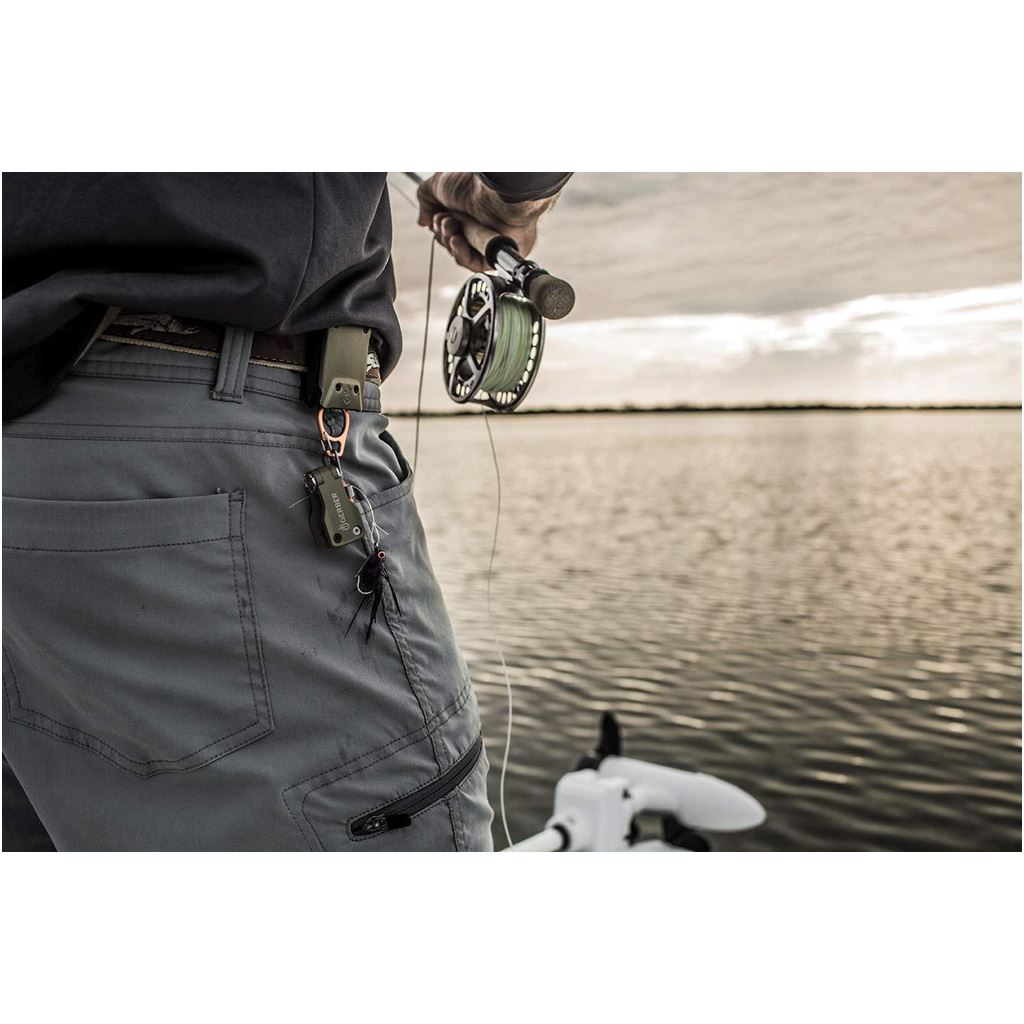 Tip control carabiner that slips on finger to absorb the tension of the line and allow for easy use | 48 inch Dyneema cable and wide body clip can handle bulky and heavy fishing tools | Tether can be secured and carried with integrated lanyard hole and retention clip | Secure heavy fishing gear with side release lock, it has an override for snagged tether tools | Fishing tool has anodized aluminum body for corrosion-resistance from harsh freshwater environments