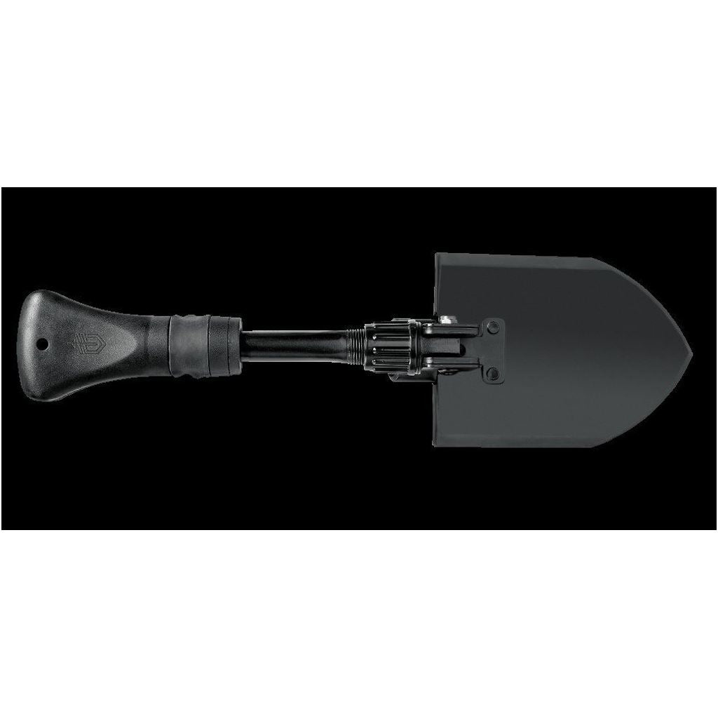The Gorge Folding Shovel features a fast and smooth push-button collapsible handle and a glass-filled nylon shaft with rubberized overgrip. The spade folds back, revealing a textured head to be used as a hammer for pounding in tent stakes. The Gorge is lightweight and packable for back-country camping and hiking.Box Contains1 x shovel, 1 x drawstring carry bag