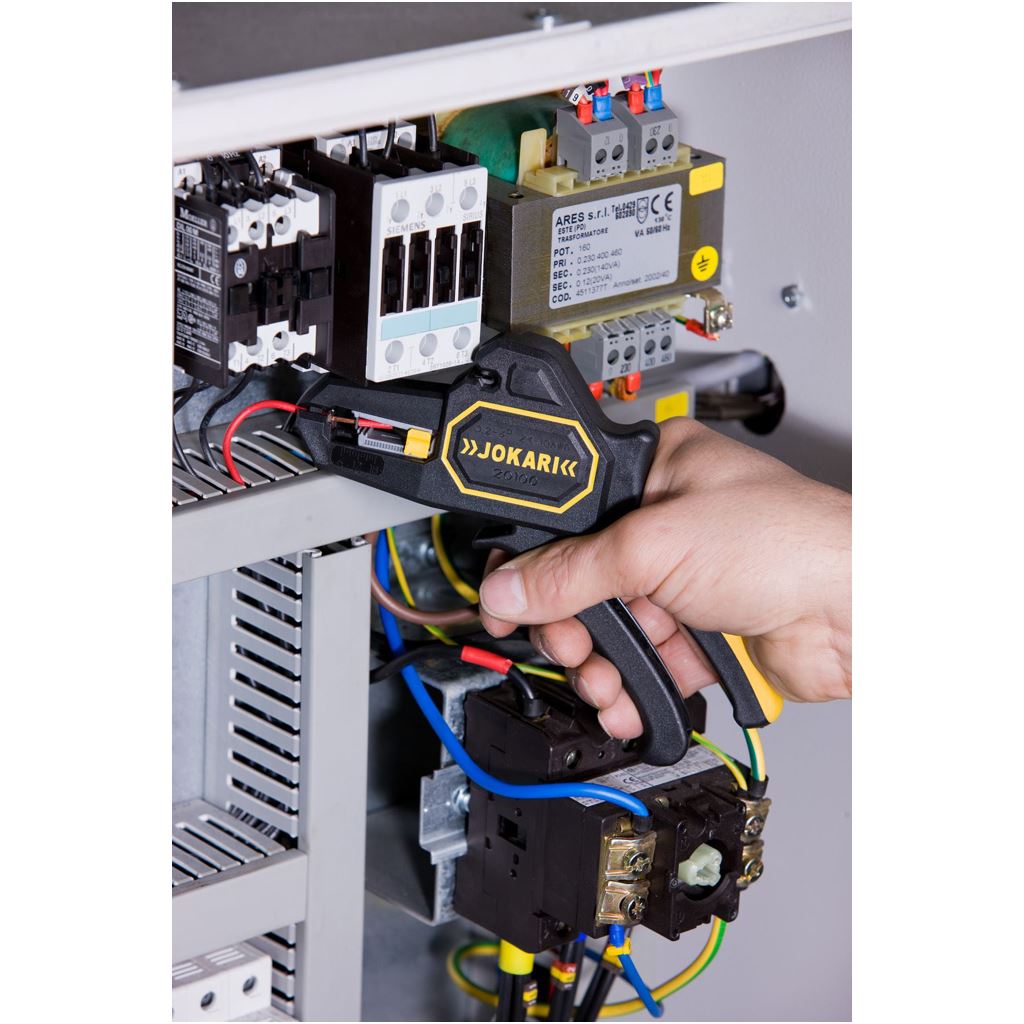 Ergonomic, automatic wire stripper for solid and stranded wires. No adjustment to diameter necessary. Wire cutter for cross section up to AWG 14 | 2,5 mm�. Adjustable length stop 6 - 18 mm. Dual-compound handle design with soft, non-slip gripping zone. Exchangeable blades.