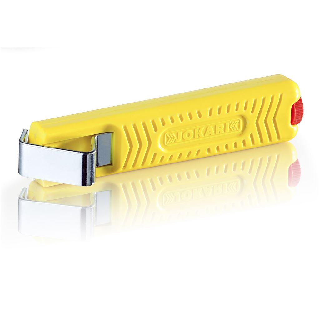 For stripping all standard round cables 4 ~ 16 mm (5/32" ~ 5/8"). Knifes with special Titanium-Nitride coating (TIN) to achieve longer life, faster cutting and less wear. The large adjustment screw allows for effortless adjustments. Automatic adjustment from round~ to length cut. Including TIN coated spare blade in the handle. TUV / GS-approved.. . . . . . . . .