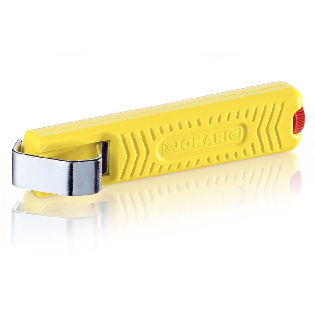 For stripping all standard round cables 8 ~ 28 mm (5/16" ~ 1.1/8"). Knifes with special Titanium-Nitride coating (TIN) to achieve longer life, faster cutting and less wear. The large adjustment screw allows for effortless adjustments. Automatic adjustment from round~ to length cut. Including TIN coated spare blade in the handle. TUV / GS-approved.