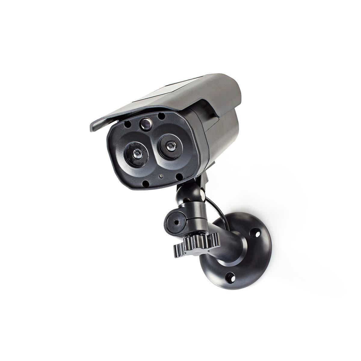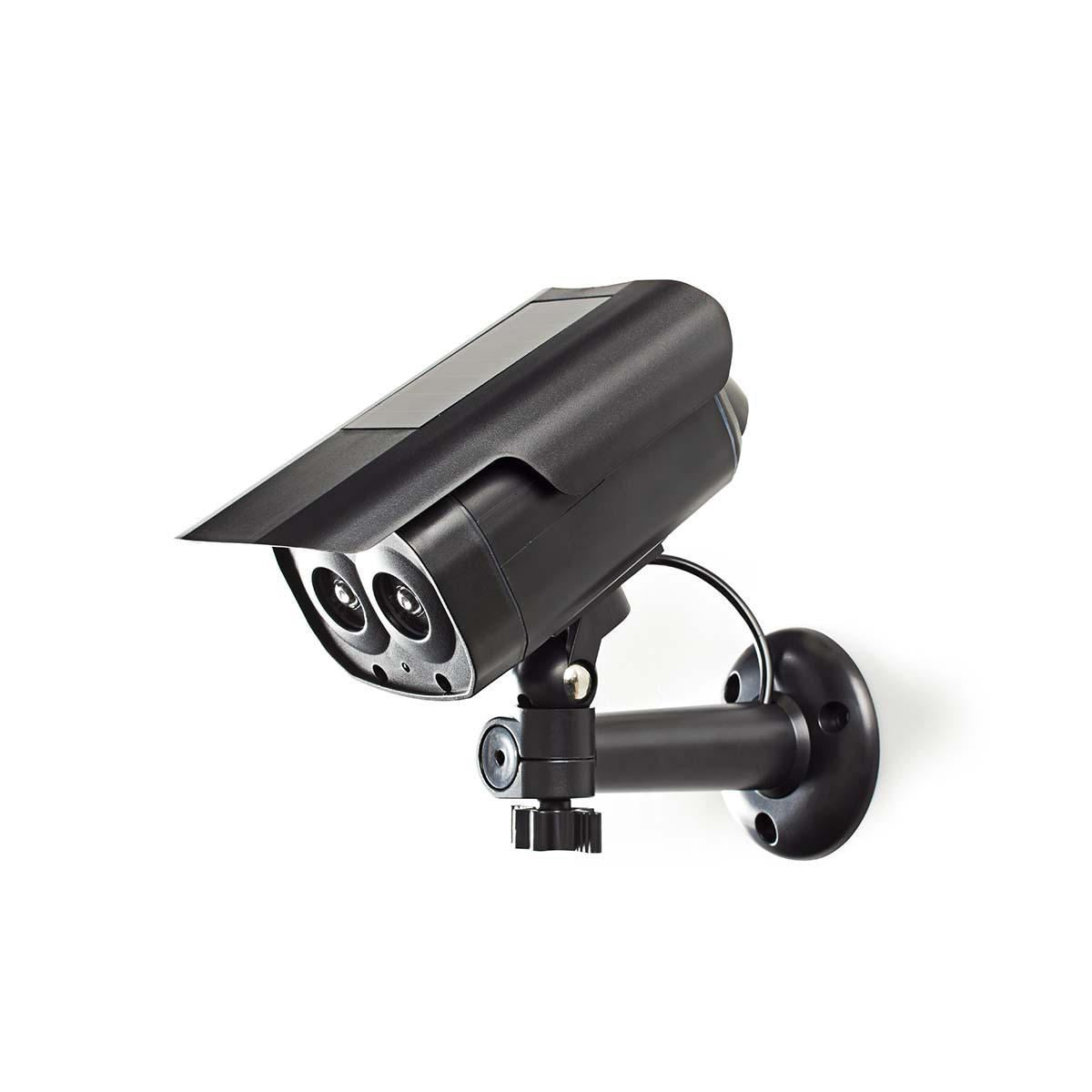 This Nedis® dummy outdoor camera provides burglary prevention at a fraction of the cost of a real camera. Its professional design integrates a flashing LED, making it almost impossible to distinguish from real. The dummy camera operates on three AA batteries which are automatically recharged by a built-in solar panel. Easy to mount with the included screws.