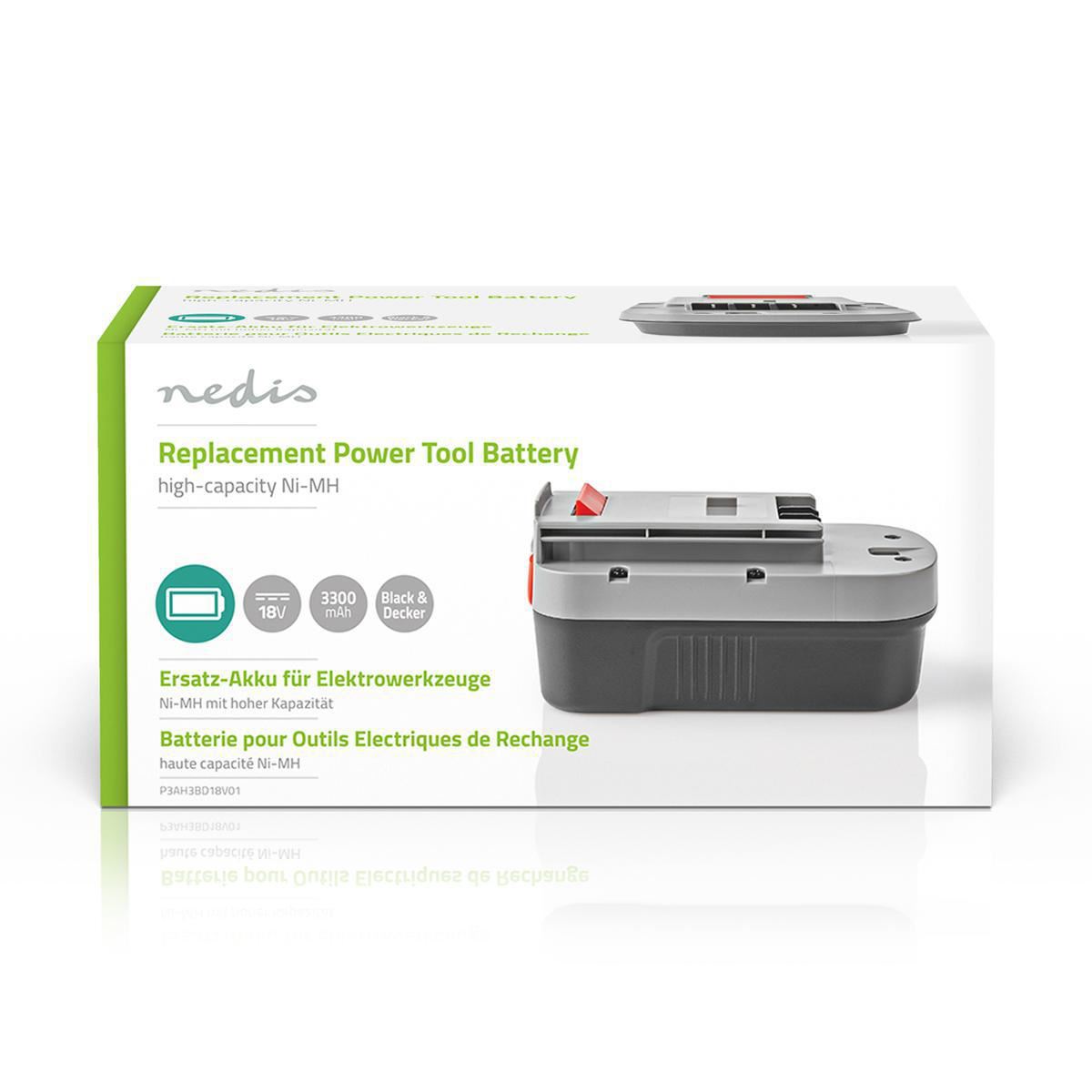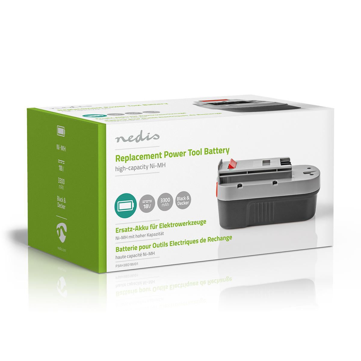 Nedis Power Tool Battery Ni-MH 18V 3.3Ah 59.4Wh Replacement for Black & Decker