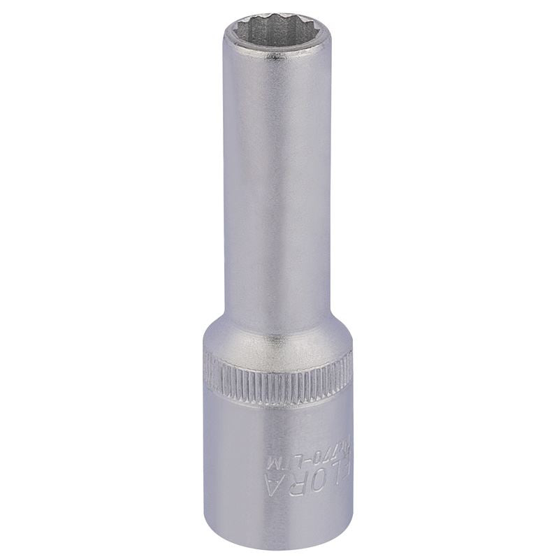 Professional Quality, sockets manufactured from chrome vanadium steel hardened, tempered and chrome plated for corrosion protection. Chamfered end allows positive nut location and entry. Hole for driving accessory spring - loaded ball. Overall length 80mm. Sold loose.