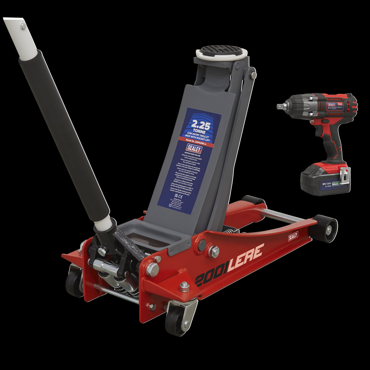 Sealey 2.2 Tonne Trolley Jack & 18V Cordless Impact Wrench - Red 2001LERECOMBO