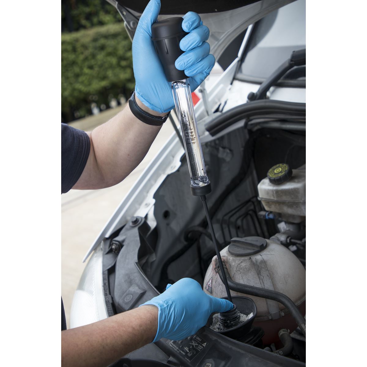 Checks condition of AdBlue. Condition is indicated by the number of discs floating in the sample. Easy-to-read test procedure on robust plastic body.