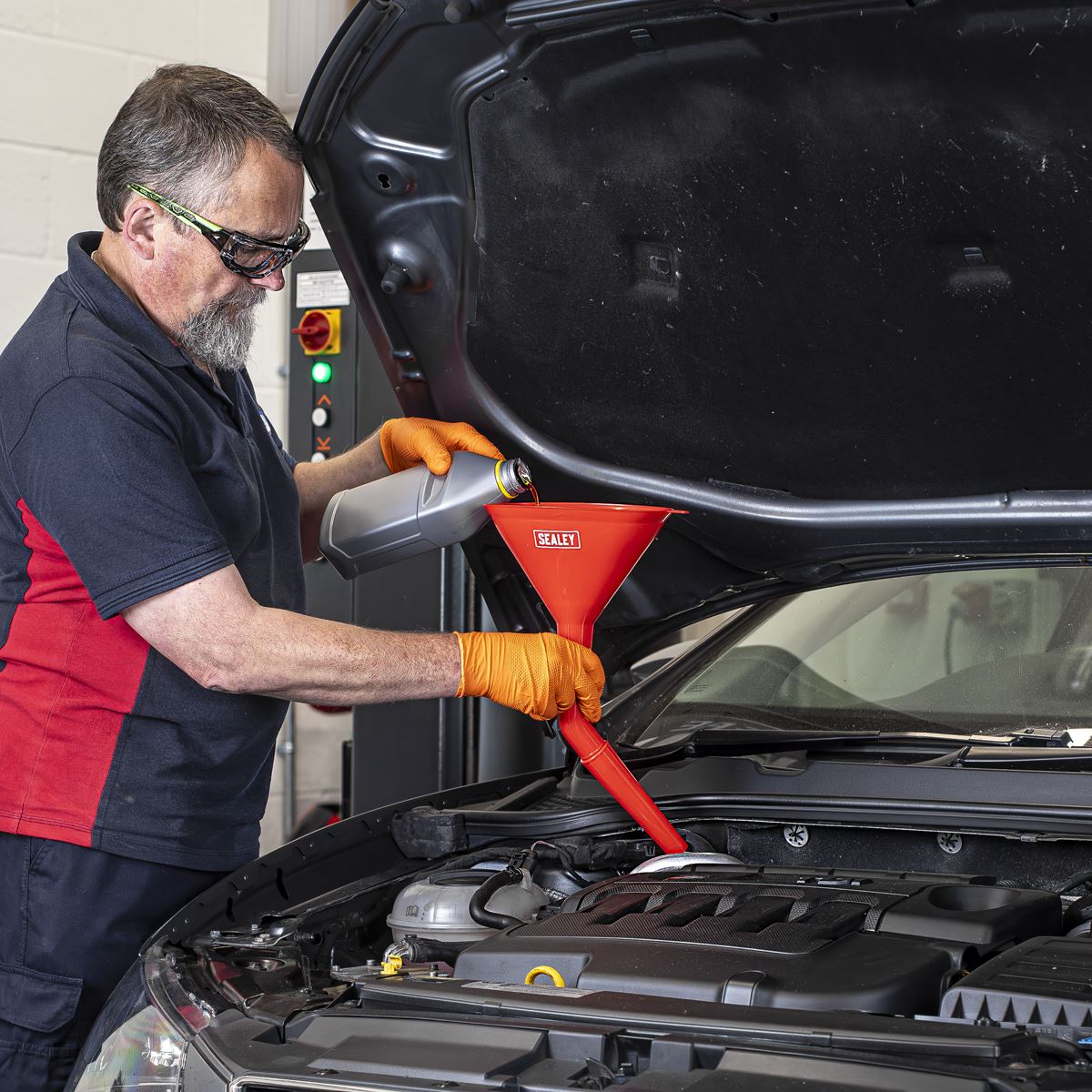 Sealey Angled Spout Oval Funnel with Filter 200mm - Medium F7