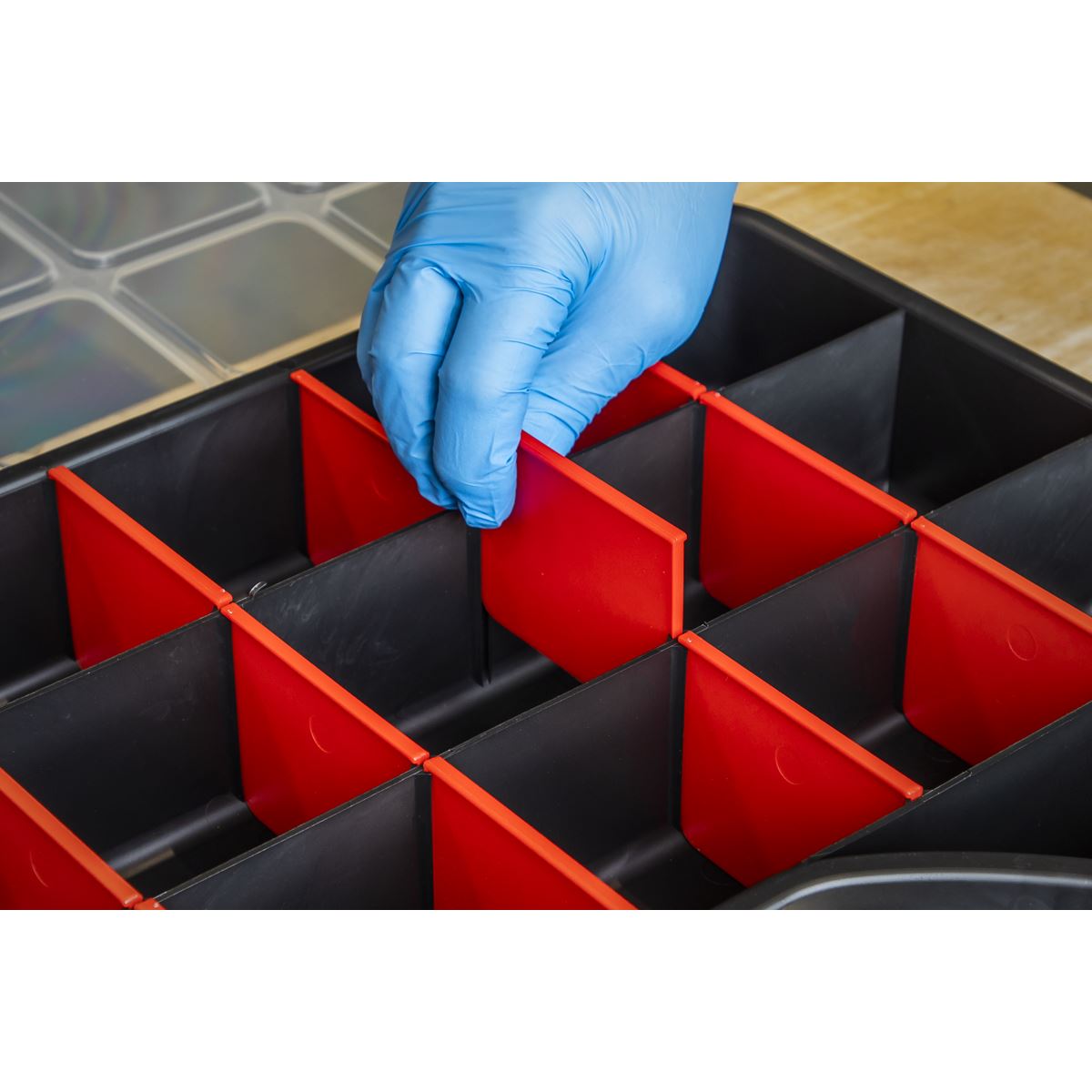 • Small section dividers can be removed when larger parts are needed to be stored.