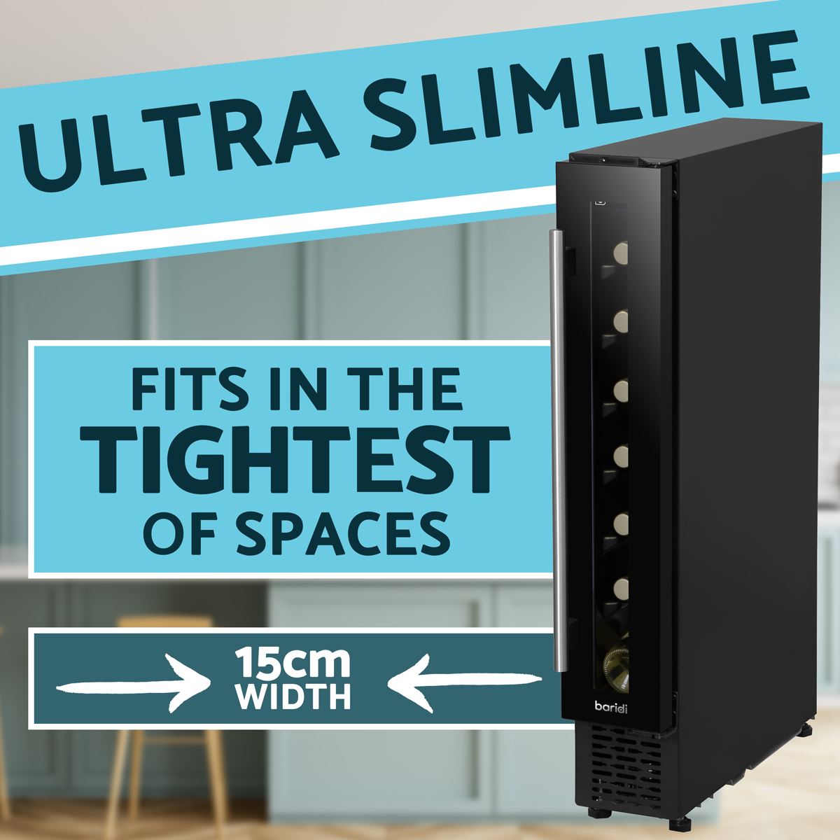 Sealey Baridi 7 Bottle 15cm Slim Wine Cooler with Digital Touchscreen Controls, Black DH76
