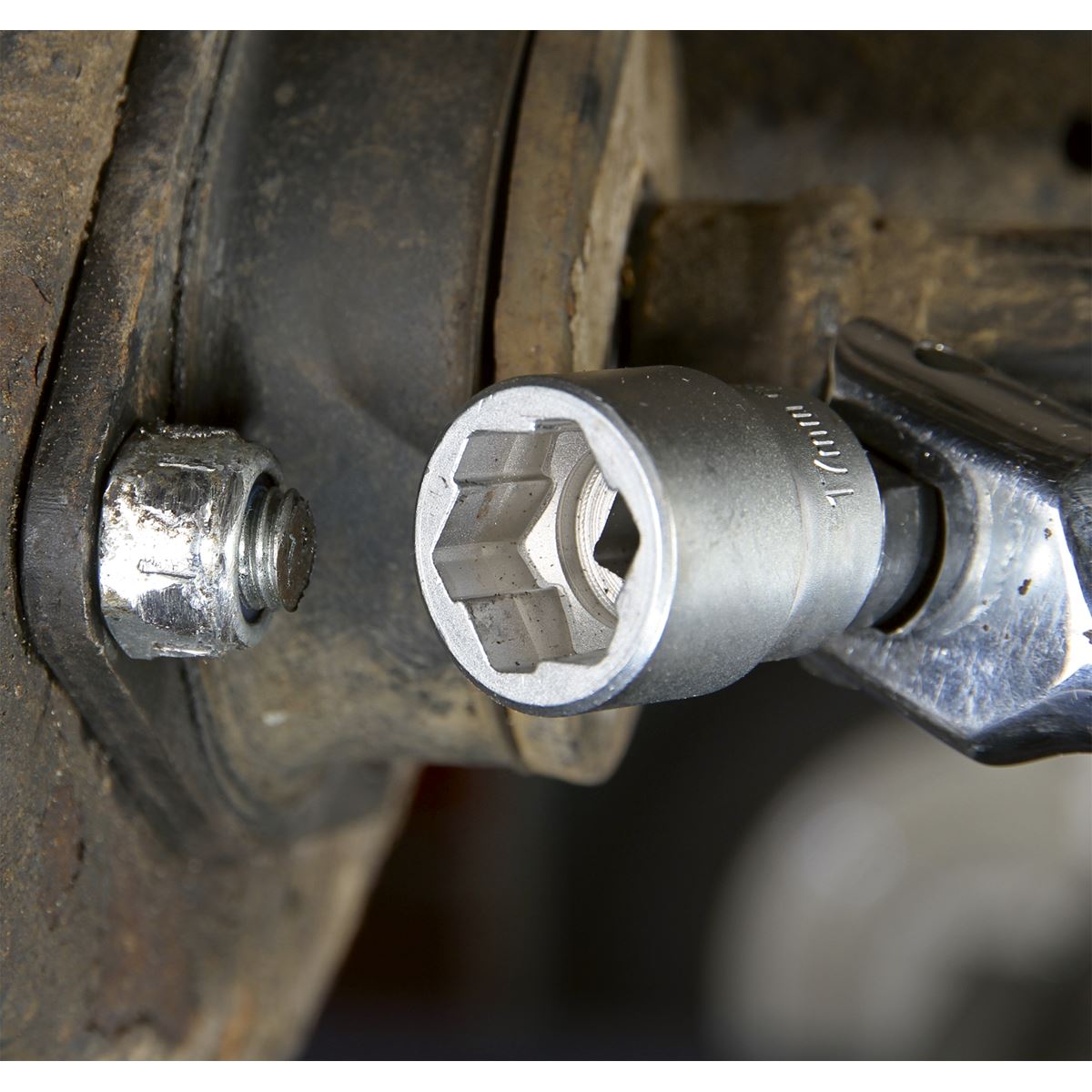 - Drop-forged Chrome Molybdenum steel sockets with a satin finish. - Innovative design provides maximum gripping power for the removal of damaged fasteners. - Sizes: 8-19mm. - Supplied in storage case. - Lifetime guarantee*. - Model No. AK7281- Drop-forged Chrome Molybdenum steel sockets with a satin finish. - Innovative design provides maximum gripping power for the removal of damaged fasteners. - Supplied in storage case. - Lifetime guarantee*.