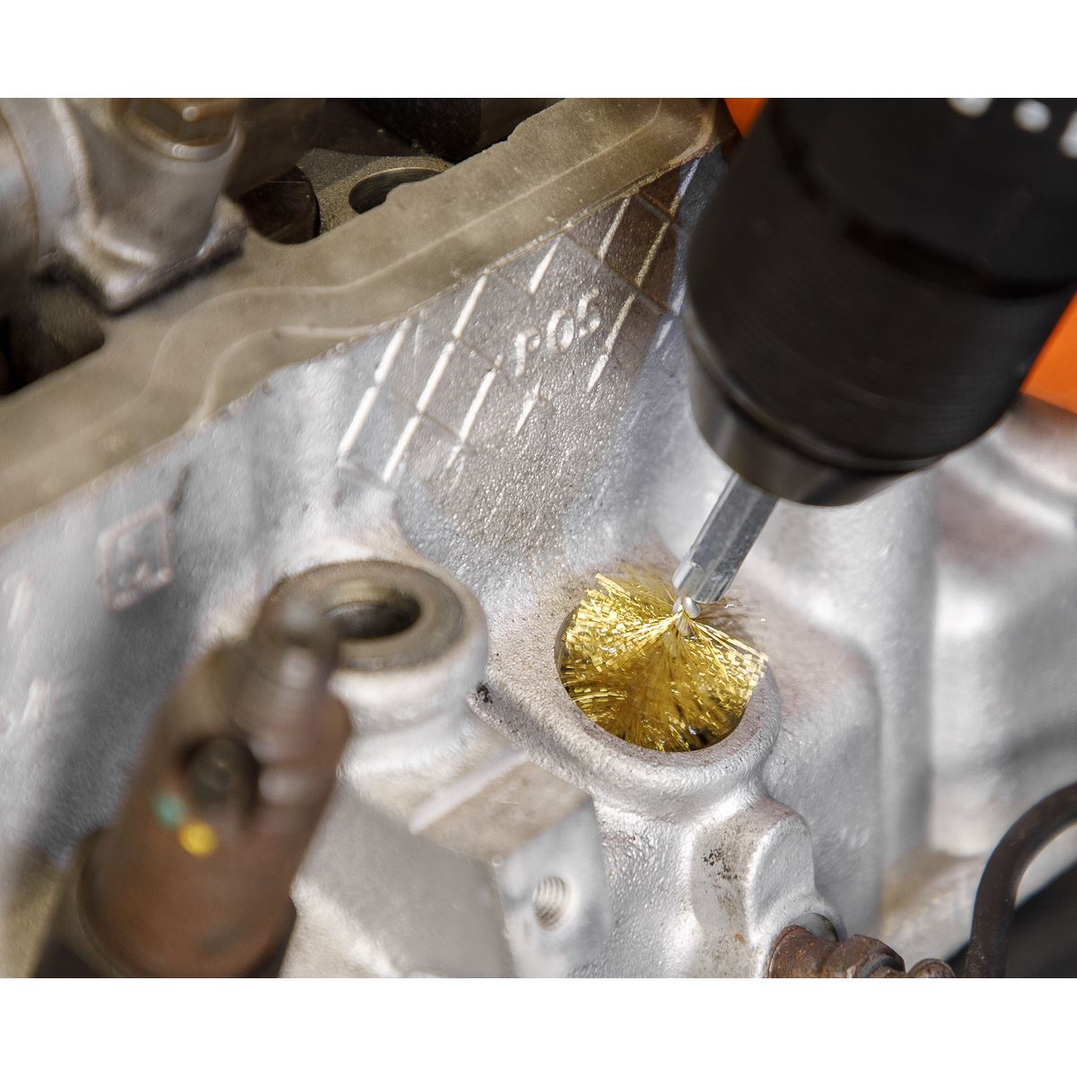 Ideal for cleaning and decarbonising areas with limited access, especially injector apertures before refitting. Set includes 3-piece brass brushes 18/20/25mm, 2-piece end brushes 15/19mm, 1-piece Steel rod, 1-piece rod and 6-piece M5 Nut.