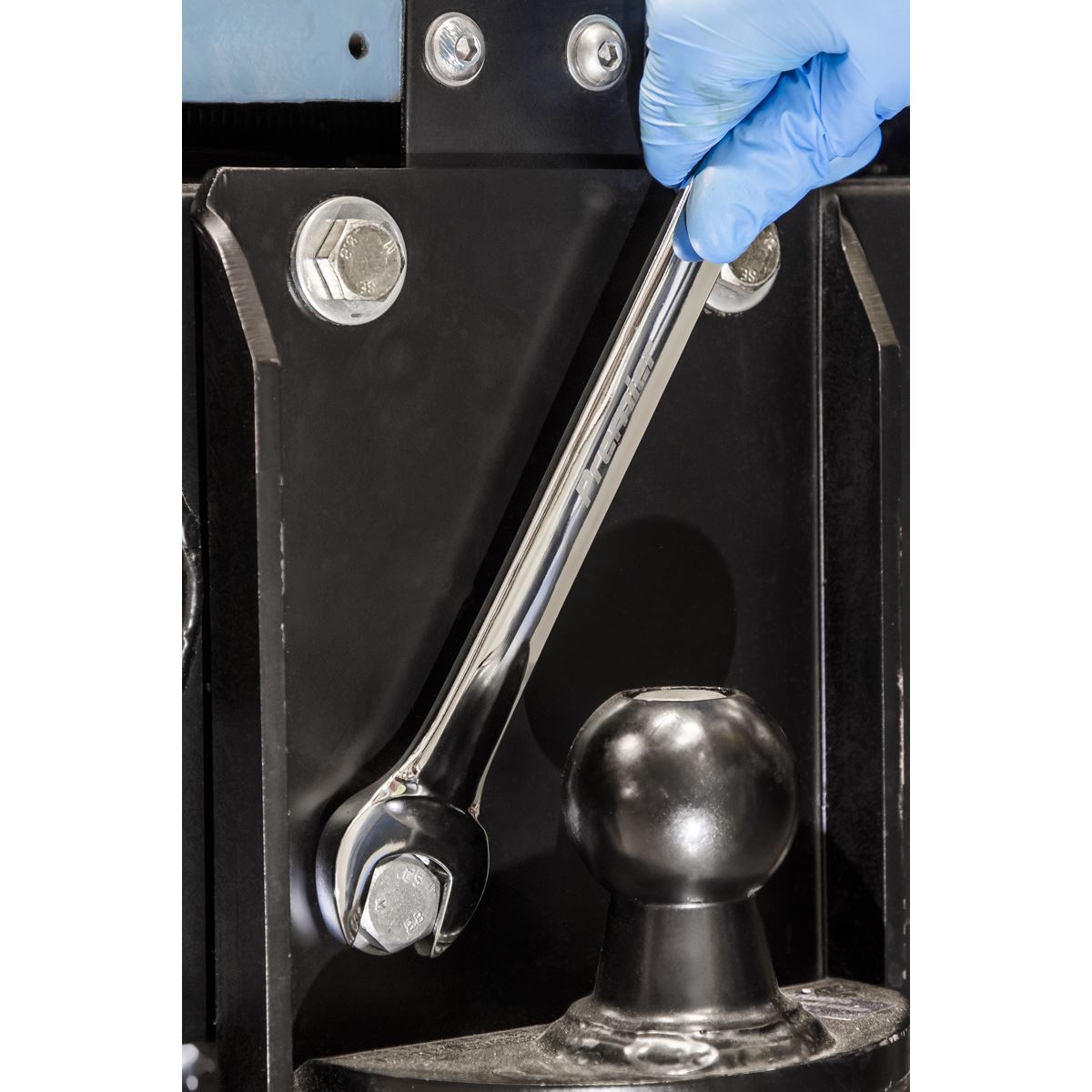 Drop forged long slim style Chrome Vanadium steel combination spanner. Hardened and tempered with a fully polished mirror finish for corrosion resistance. 15� Offset WallDrive� ring keeps knuckles clear of obstructions.