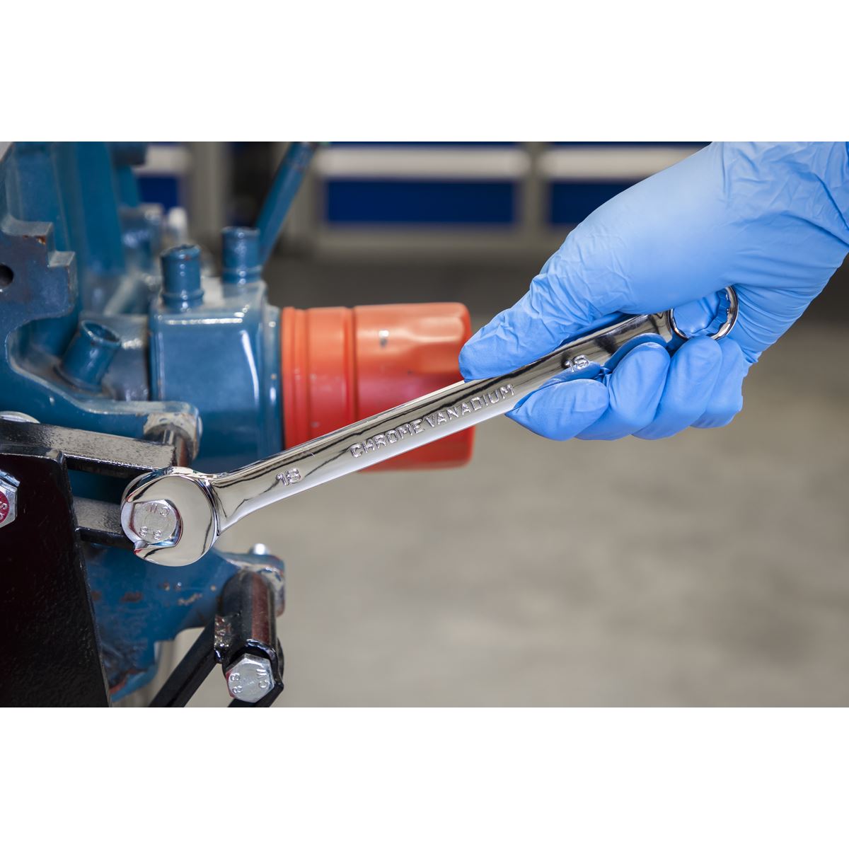 Drop-forged Chrome Vanadium steel spanners. Hardened and tempered with a fully polished, mirror finish. Open-end and WallDrive� ring combination with long slim shaft. Supplied In EVA foam storage tray.