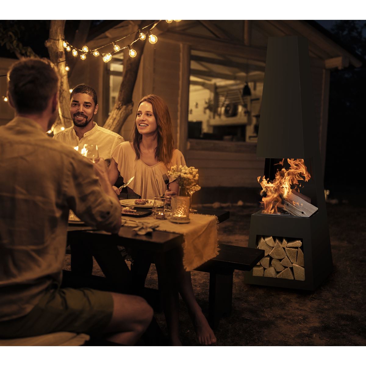 • Integrated firewood storage enables you to keep your fuel tidy and readily available.