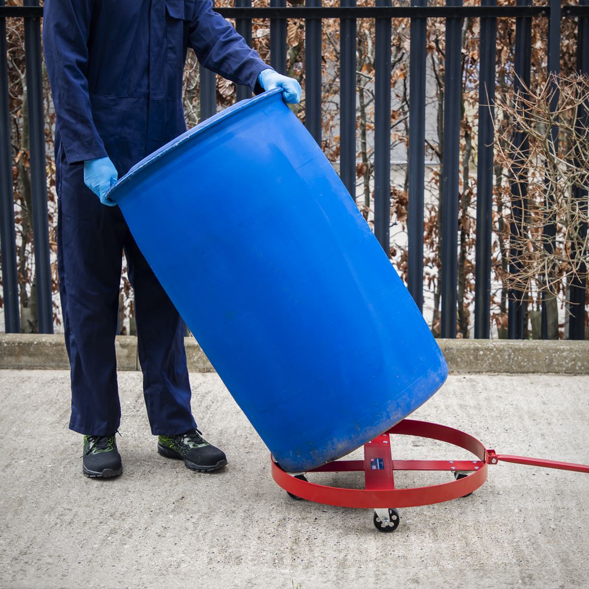 - Transport drums quickly and safely on four large diameter metal castors. - Wheels are strategically positioned for even weight distribution and fitted with handle for easy manoeuvrability. - Suitable for use with 205L drums. - Capacity: 400kg - Model No. TP205H- Transport drums quickly and safely on four large diameter metal castors. - Wheels are strategically positioned for even weight distribution and fitted with handle for easy manoeuvrability. - Suitable for use with 205L drums.