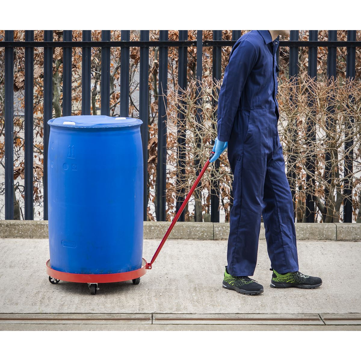 Transport drums quickly and safely on four large metal castors. Wheels are strategically positioned for even weight distribution and fitted with handle for easy manoeuvrability. Suitable for use with 205L drums.