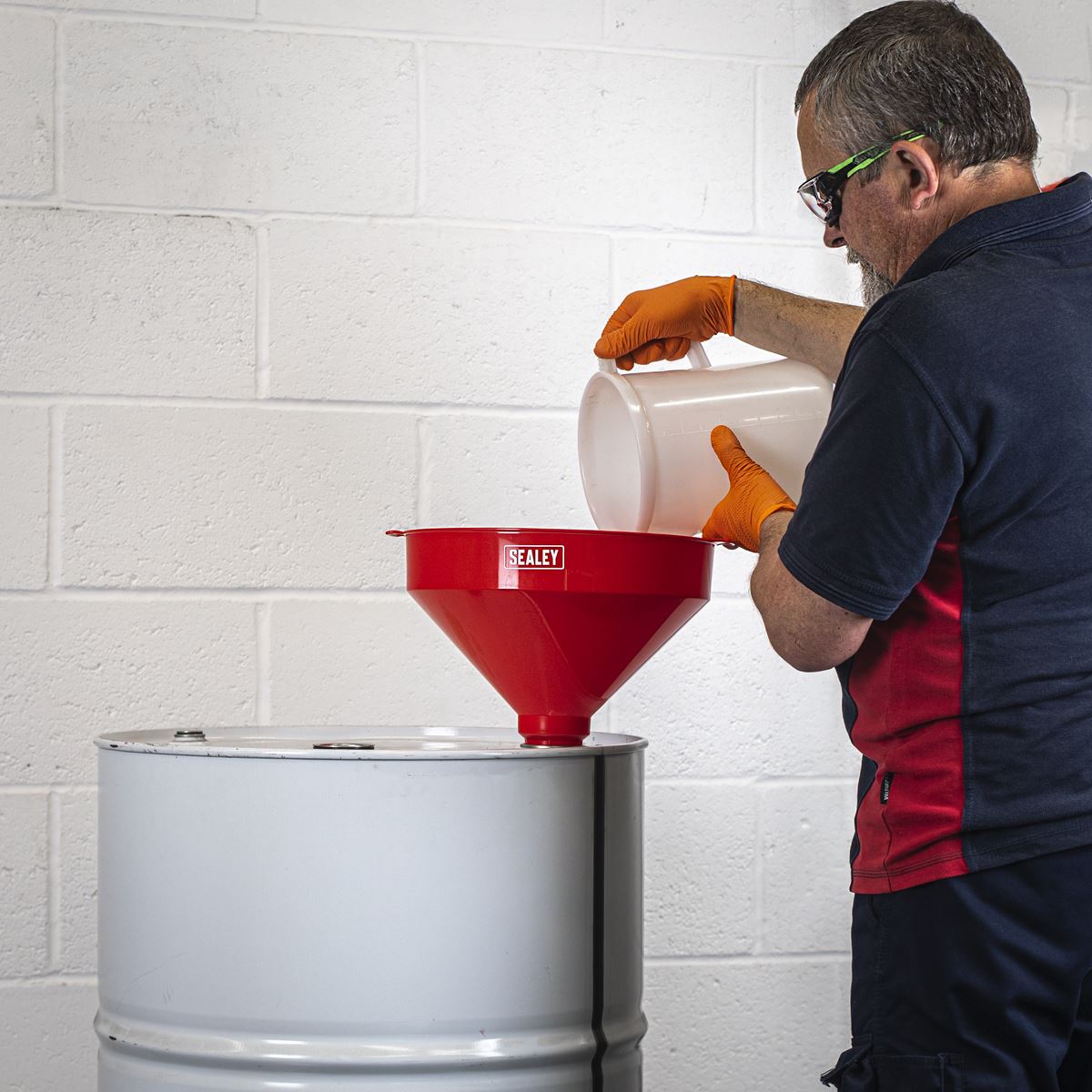 • Polyethylene funnel resistant to oil, fuel and some acids.