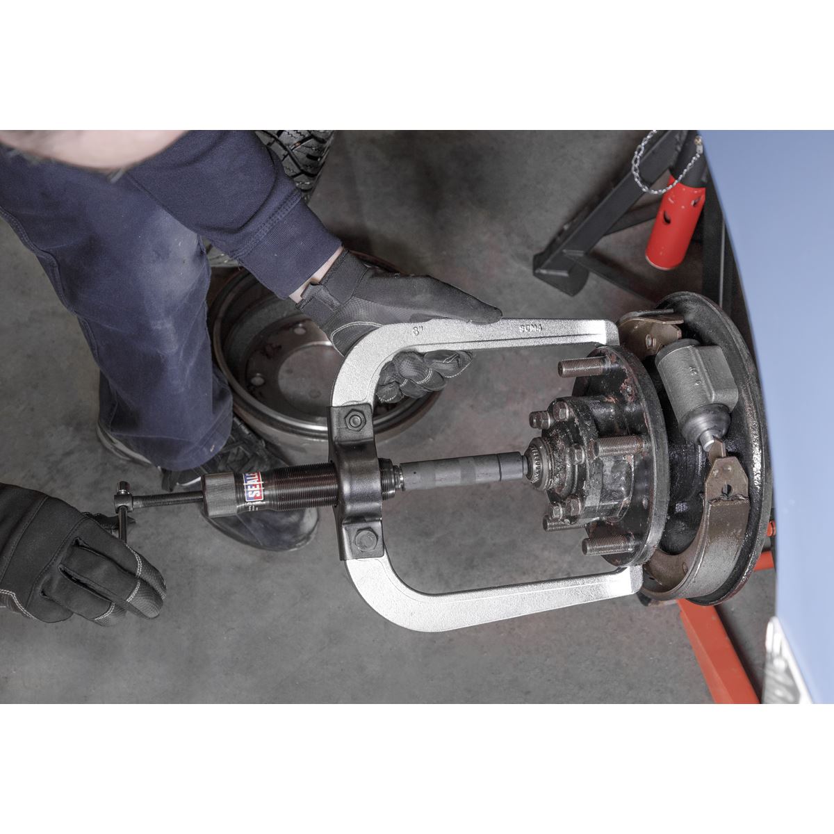 - Master set of gear pullers and bearing separators. - Forged steel bearing separator. - 10tonne Ram with enough force to remove most stubborn bearings, pulleys and shafts. - Supplied in storage case. - Contents: 10tonne Hydraulic Ram, 100mm Leg (x3), 150mm Leg (x3), 200mm Leg (x3), Twin Head, Triple Head, Extension Rod; 25 x 50mm (x1), 25 x 100mm (x1), Main Rod; 200mm (x4), Beam, 75-105mm Separator, 5/8" Bolt, Ram Service Kit, Ram Nut. - Model No. PS982- Master set of gear pullers and bearing separators supplied in storage case. - Forged steel bearing separator. - 10tonne Hydraulic ram compatible with other sets in the range.