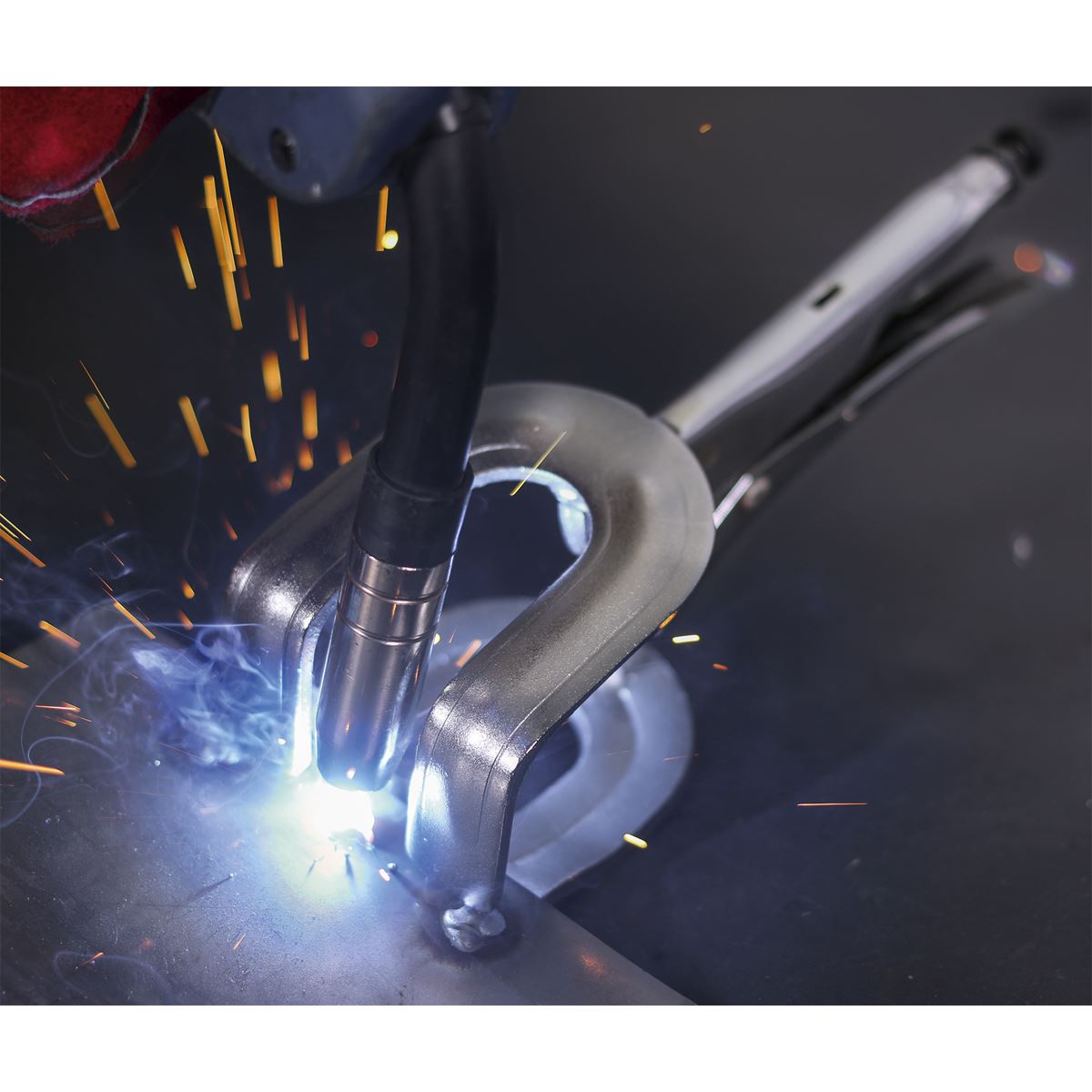 U-Style jaw permits the clamping of adjacent joints, allowing good visibility to workpiece. Suitable for assembly and welding work. One-handed operation allows free hand to position material whilst being clamped.