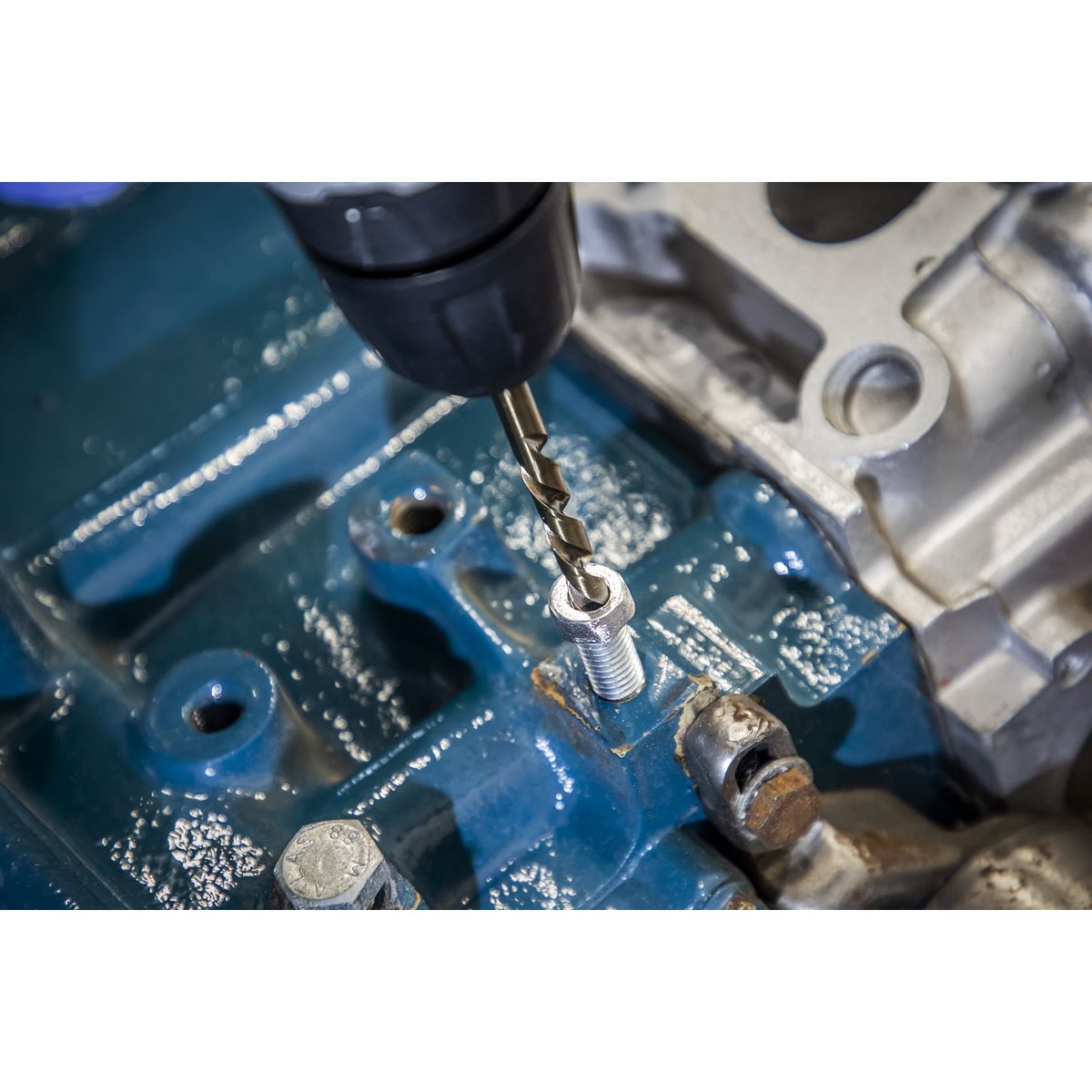 Comprehensive 49pc master extractor set, including Chrome Molybdenum screw, bolt, stud and nut extractors. Features left-handed cobalt drill bits, used to drill pilot holes (reversible drill is required), which often extract the fasteners/bolts themselves. Spiral flute extractors for use with bolts/fasteners requiring less torque. Multi-spline extractors when higher torque or restricted access is required and 3/8"sq drive reverse spiral bolt extractors designed for maximum grip of bolt and nuts. Includes a 3/8" to 1/4"sq drive adaptor. Supplied in storage case.